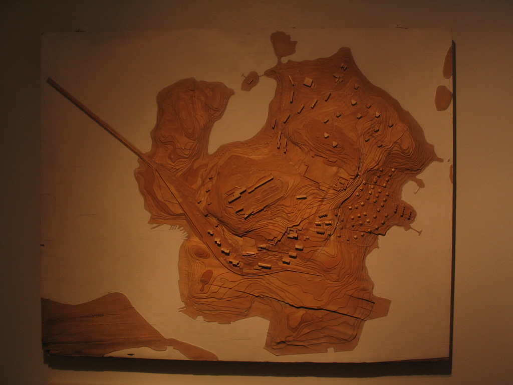 A beautiful topographic model of Säynätsalo (which is an island in Lake Päijänne) and its buildings, including the Town Hall, which see just below the centroid of the island.