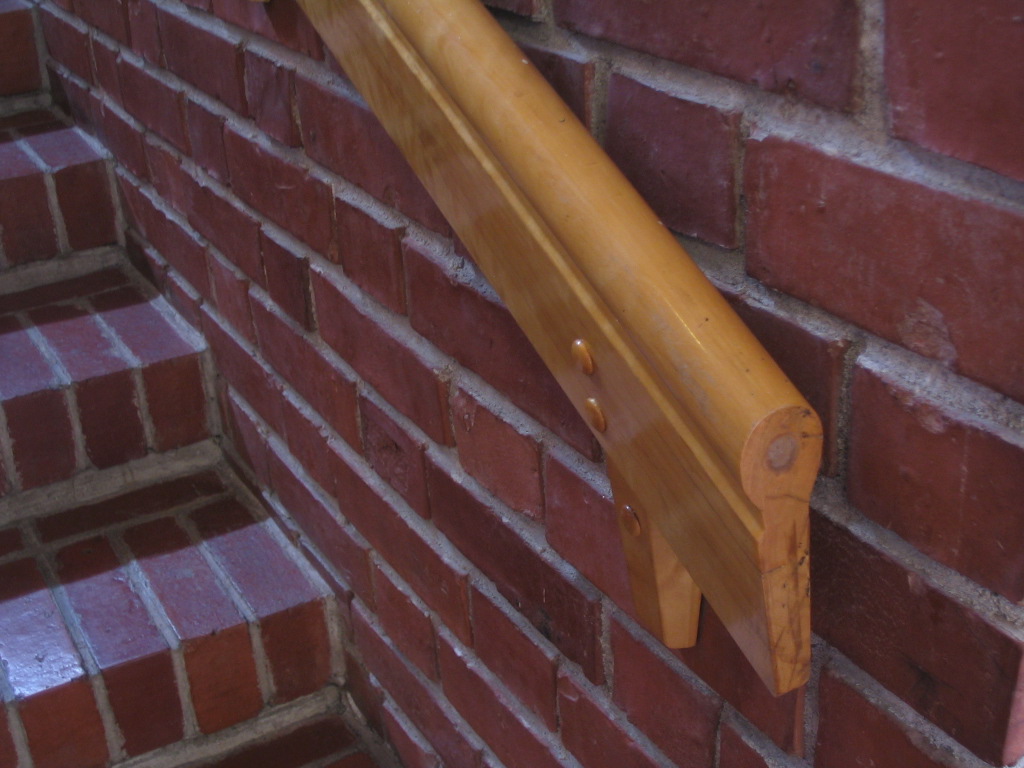 At the top of the assembly hall stairs, nice shallow steps between landings, no diagonal railings needed even.
