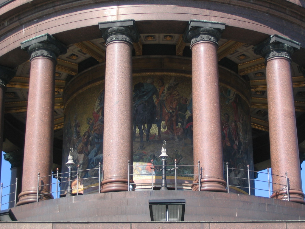 A zoom of the arcade at the top of the column (i.e. the columns at the top of the, uh, column) and the intense mosaic behind it.