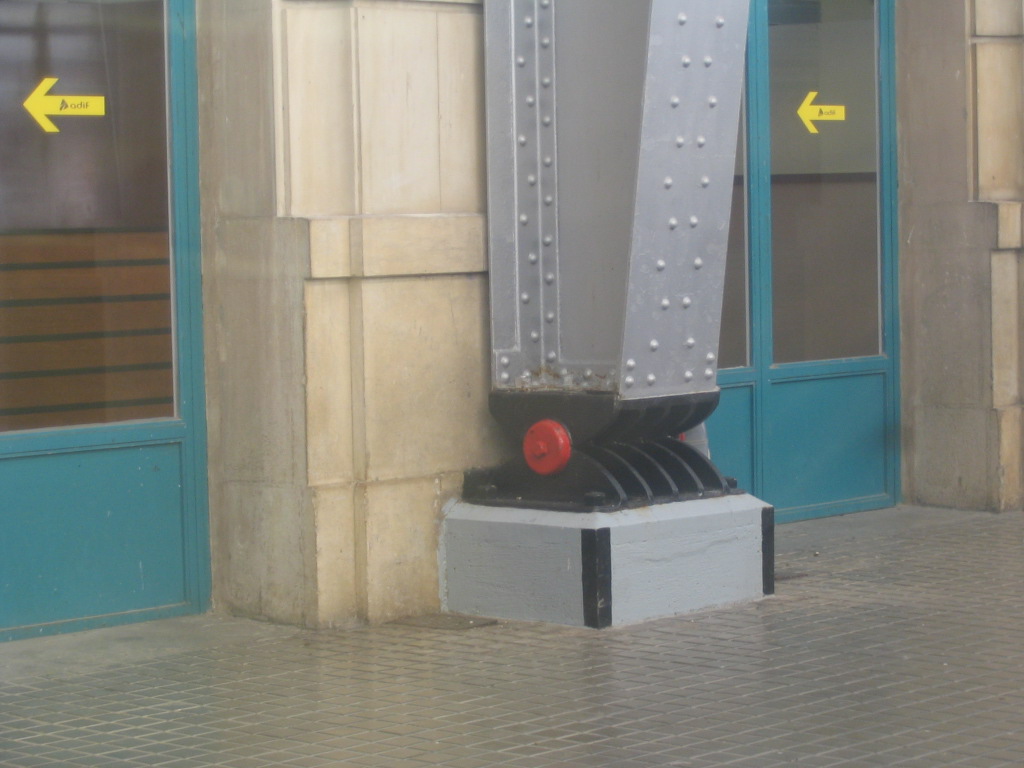 A cheerful detail at Portbou station. It always surprises me to see a single pin transferring all the weight of a large steel structure.
