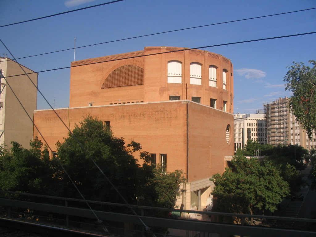 In the major city of Girona, a building with hints of Kahn or Moneo. It's along the Plaça de la Constitució, but I haven't been able to determine what it is.