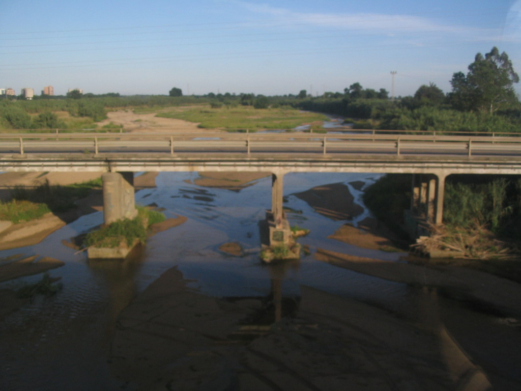 The Riu de la Tordera flowing sparsely in the lengthening shadows.