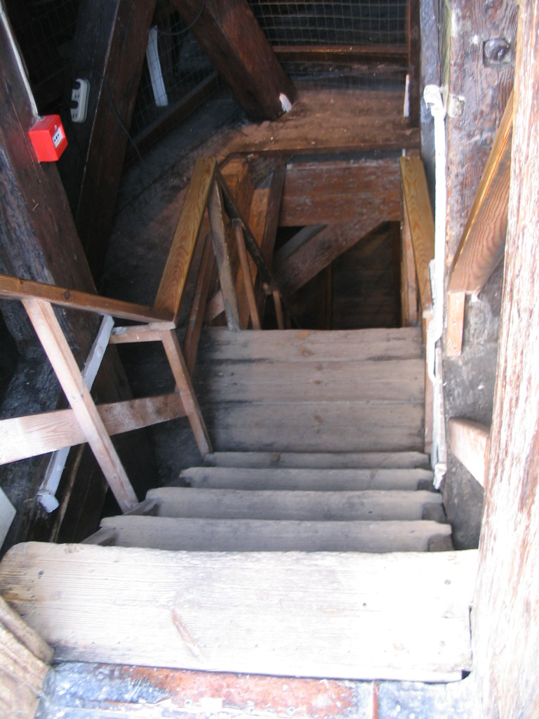 The top of the stairs, heading back down.