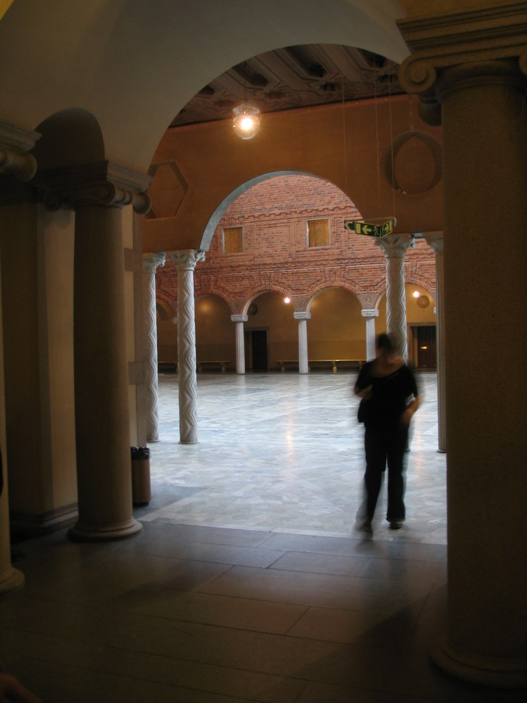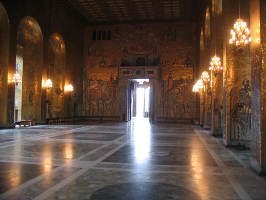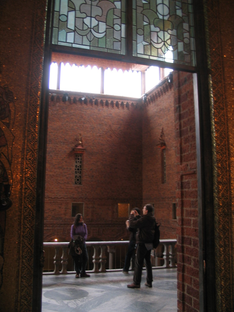 A balcony along the side of Gyllene Salen overlooks Blå Hallen.
