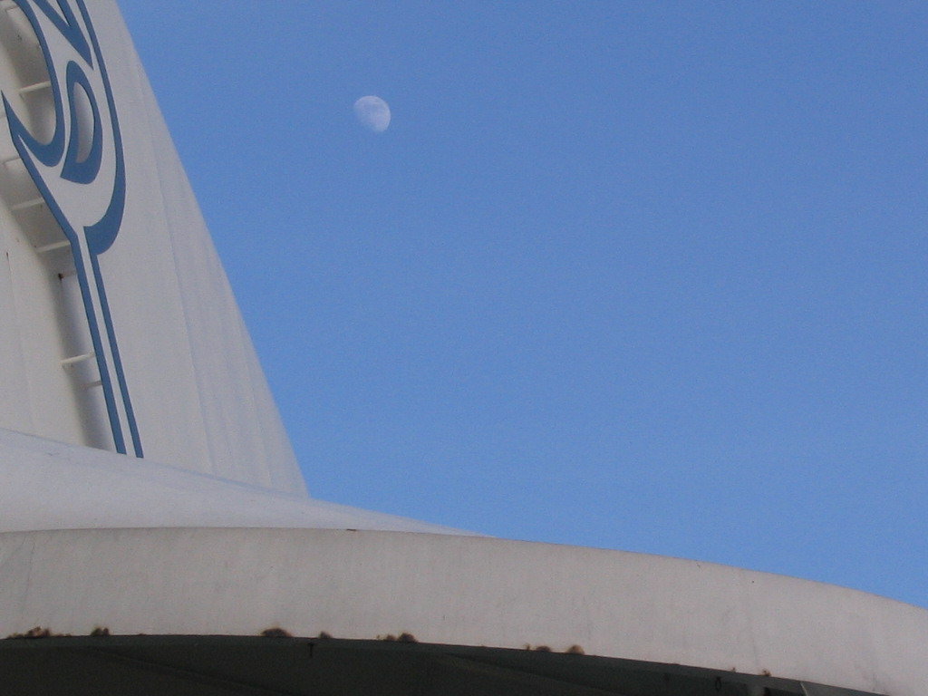 Along the shore after liftoff: an approaching brigade of apartment buildings.