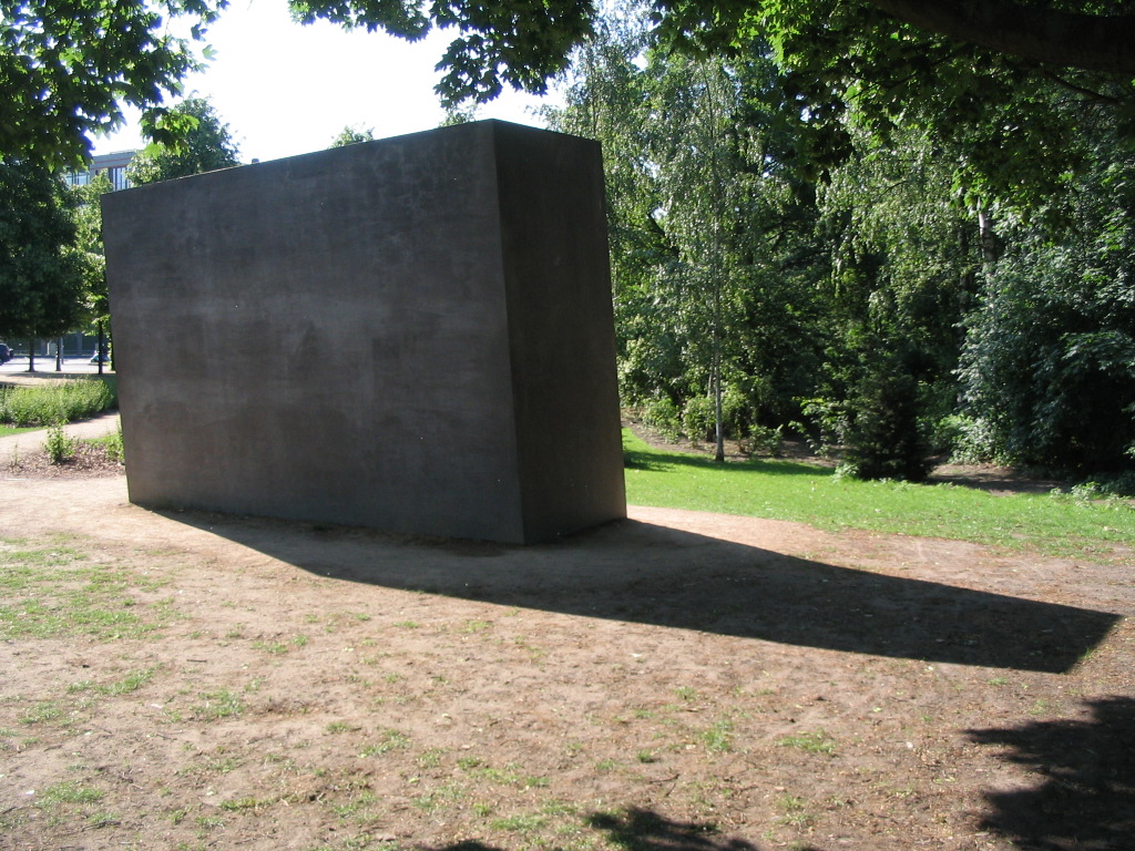 The lindens were along the eastern edge of the Tiergarten, which I subsequently ventured into (on the other side of the Wall's former path). Also near the edge was this mystery box that looked like one of the memorial's stelae turned occupiable. (I might have determined what it was at that point, but if so have long since forgotten, and have not been able to figure it out online.)