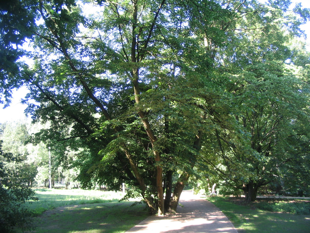 A lushly framed glimpse back to the memorial, durch die Linden.