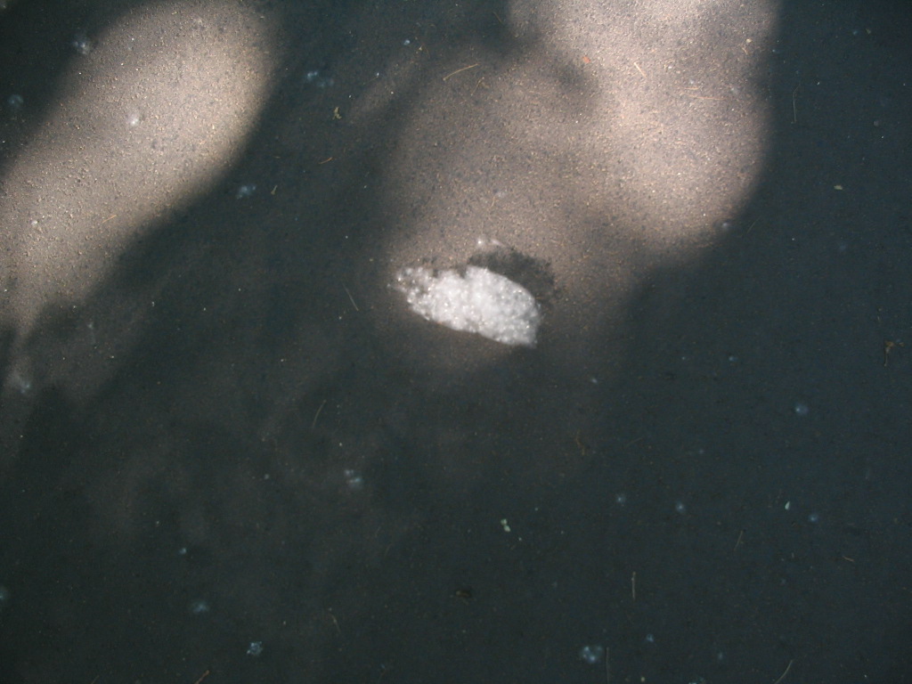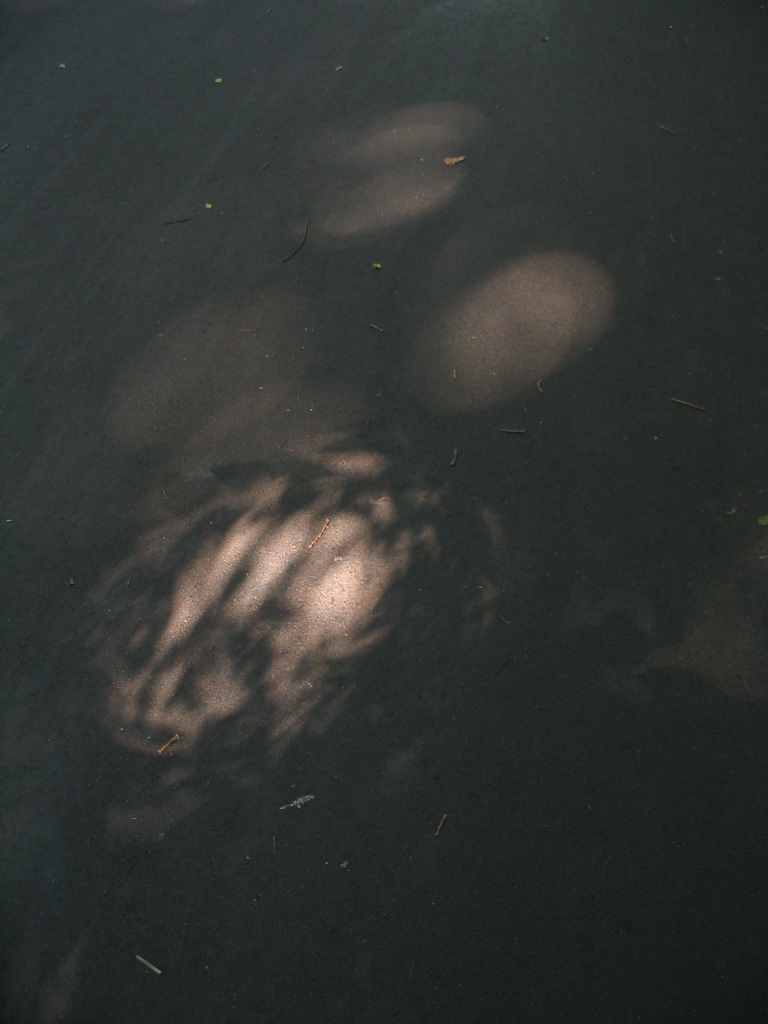 The sun shining through small gaps in the canopy produced some curious optical effects; the bright cluster here almost looks algal or something.