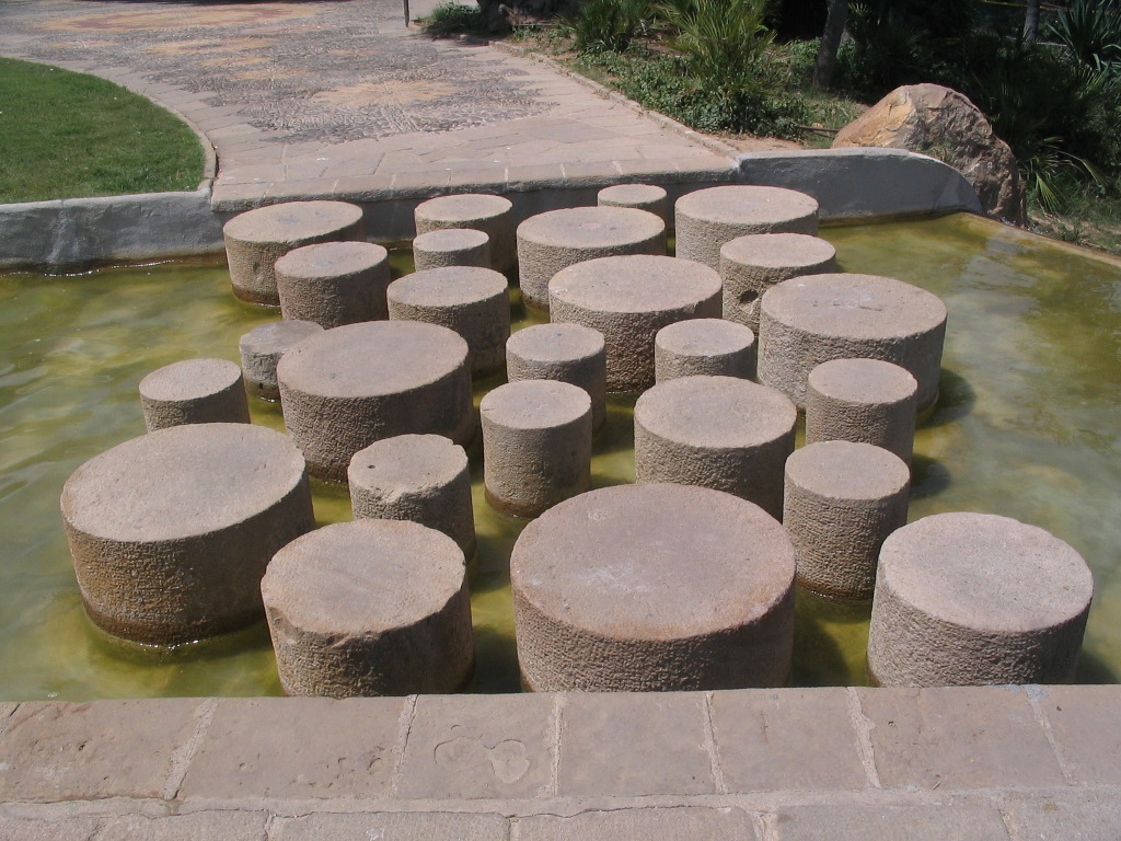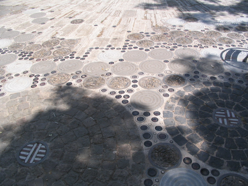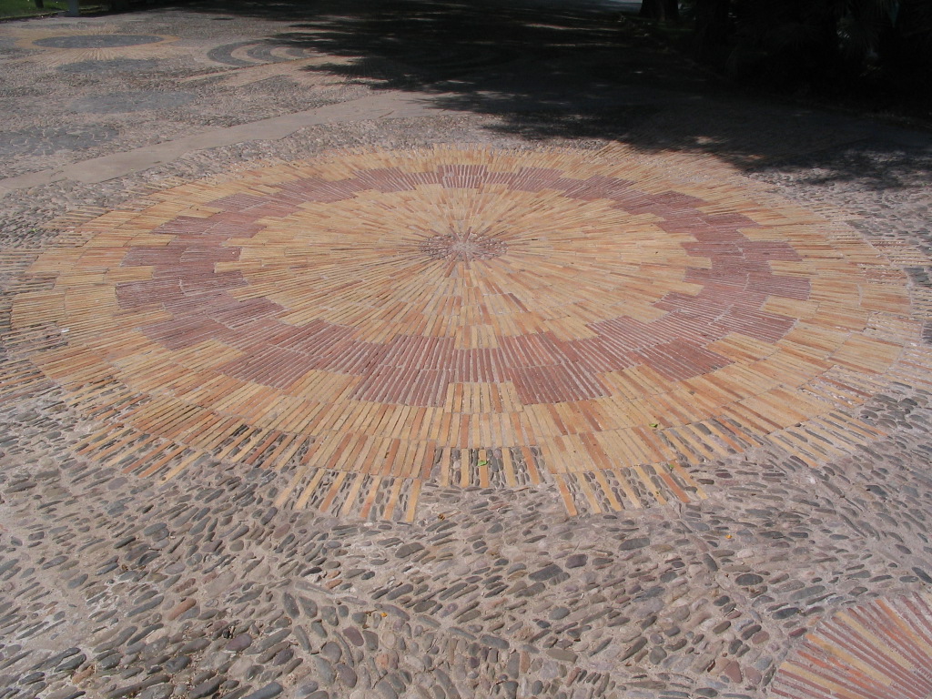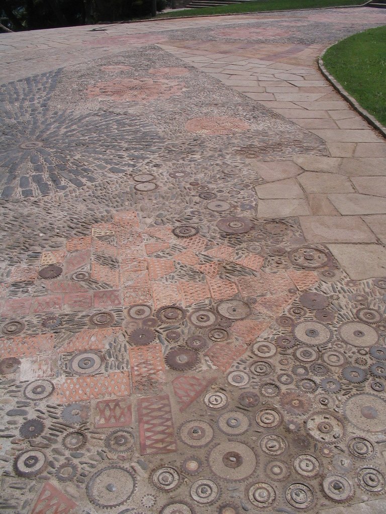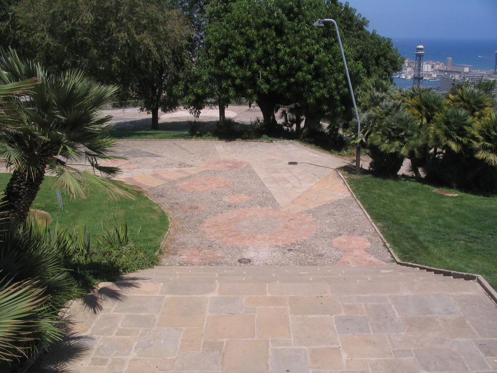 The Mirador is paved throughout with an ever-varying mosaic of stone, brick, and other materials, designed by Joan-Josep Tharrats i Vidal. It was constructed through the 1960s.