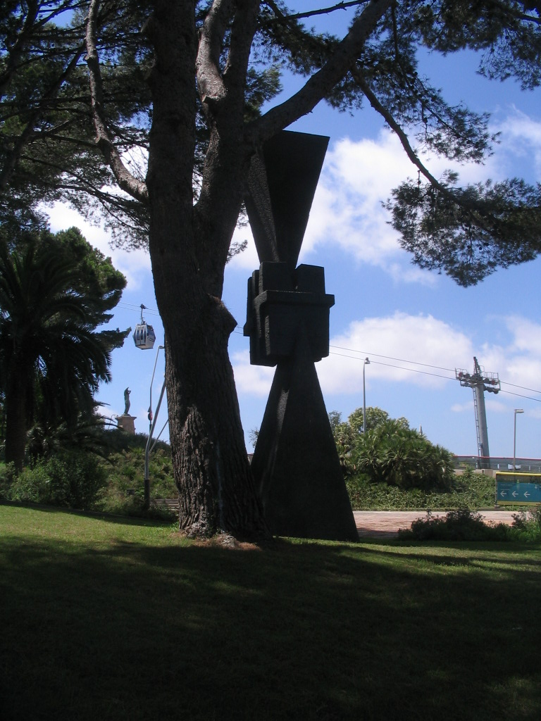 The primal and well-shaded Homenatge a Barcelona by Josep Maria Subirachs, with some careful statue and cablecar composition in the background at left.