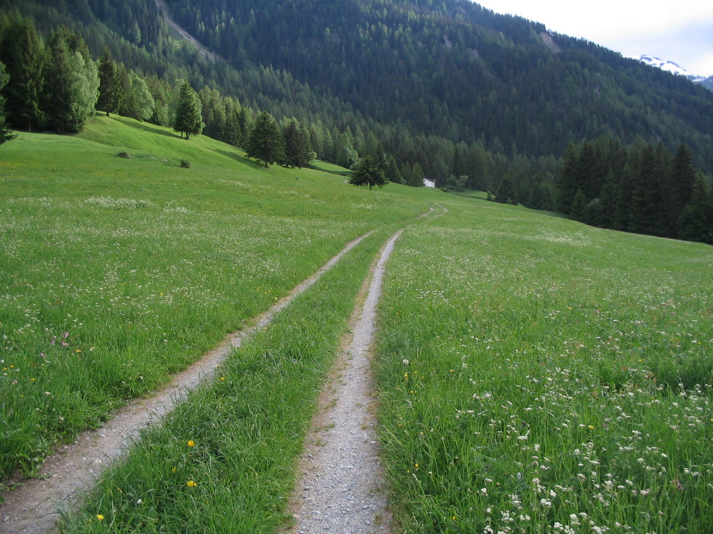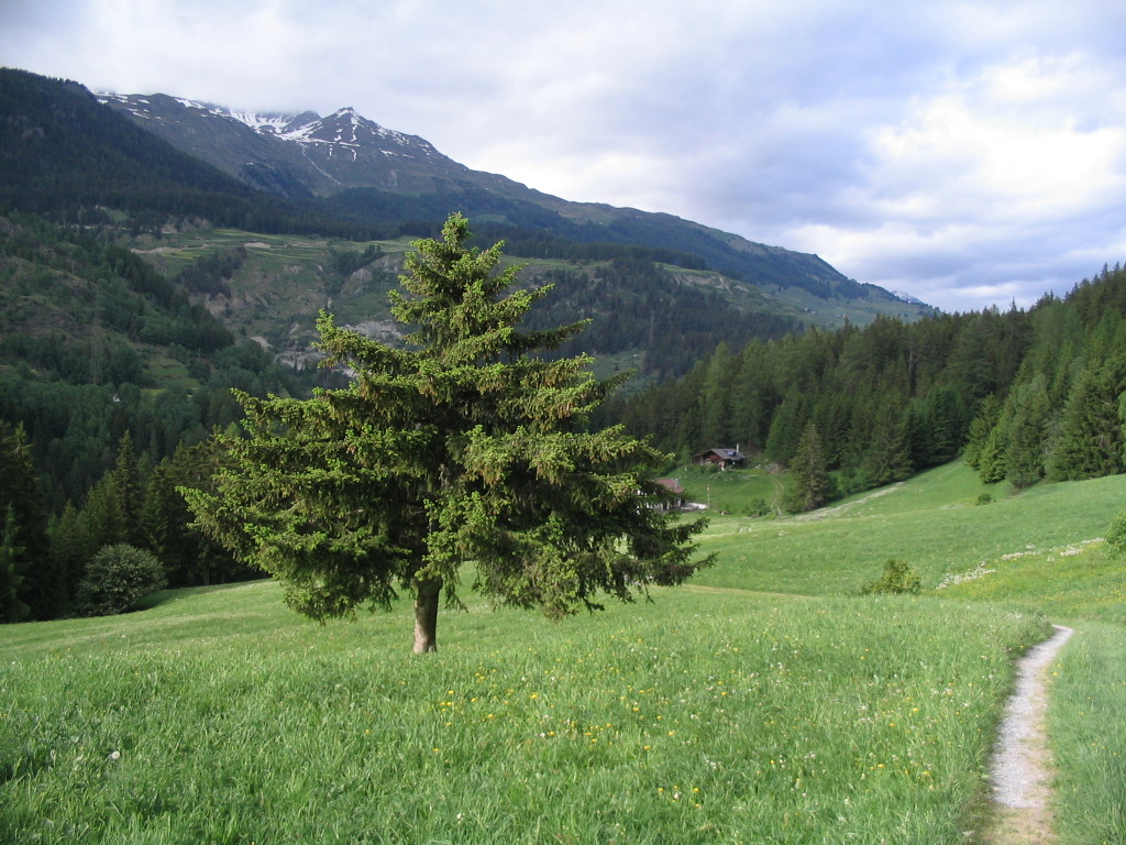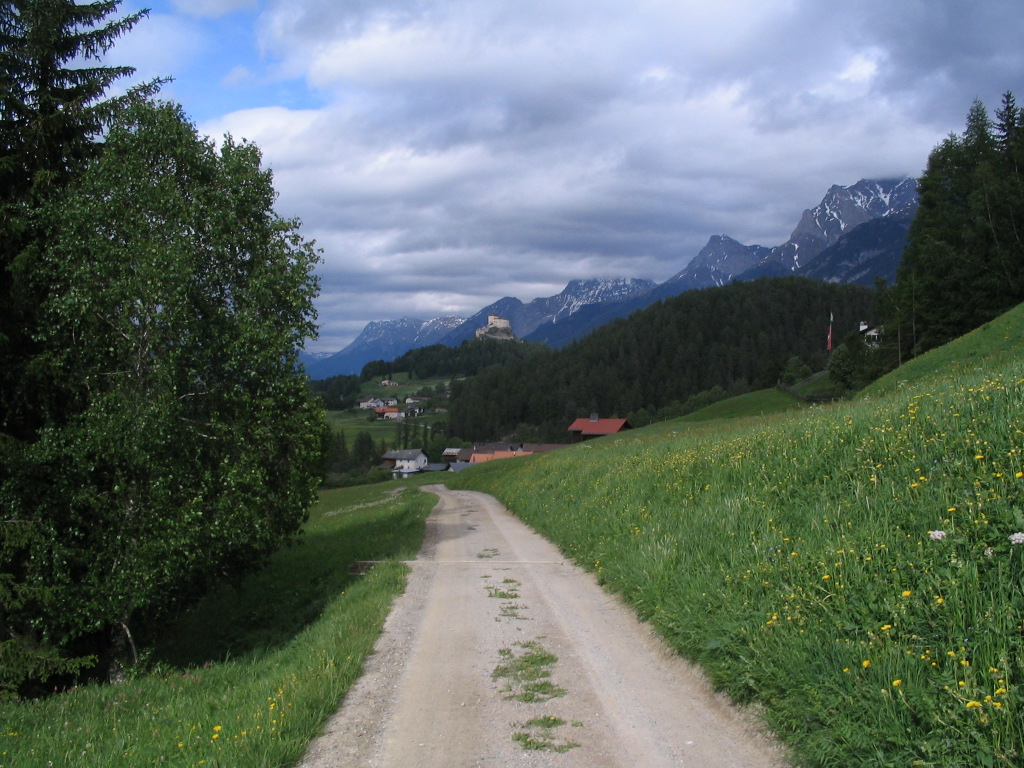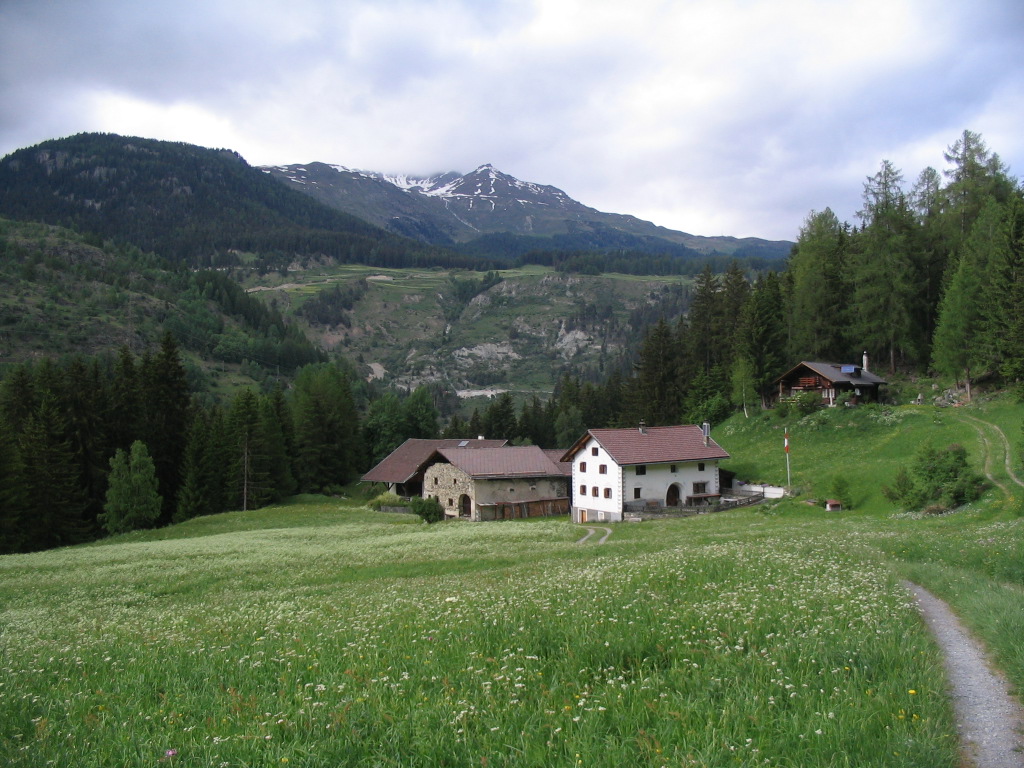 After I ascended another rise, both Vallatscha and Chaposch were in view, along with the Chastè.