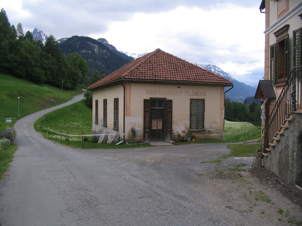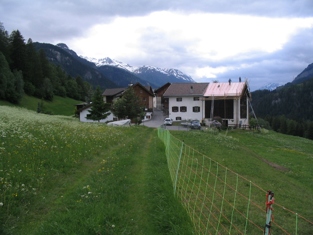 Before Fontana, I arrived at the hamlet Florins, and the trail became a road. Cool to see some roofing in progress.