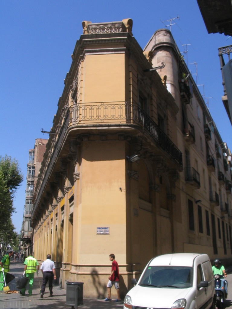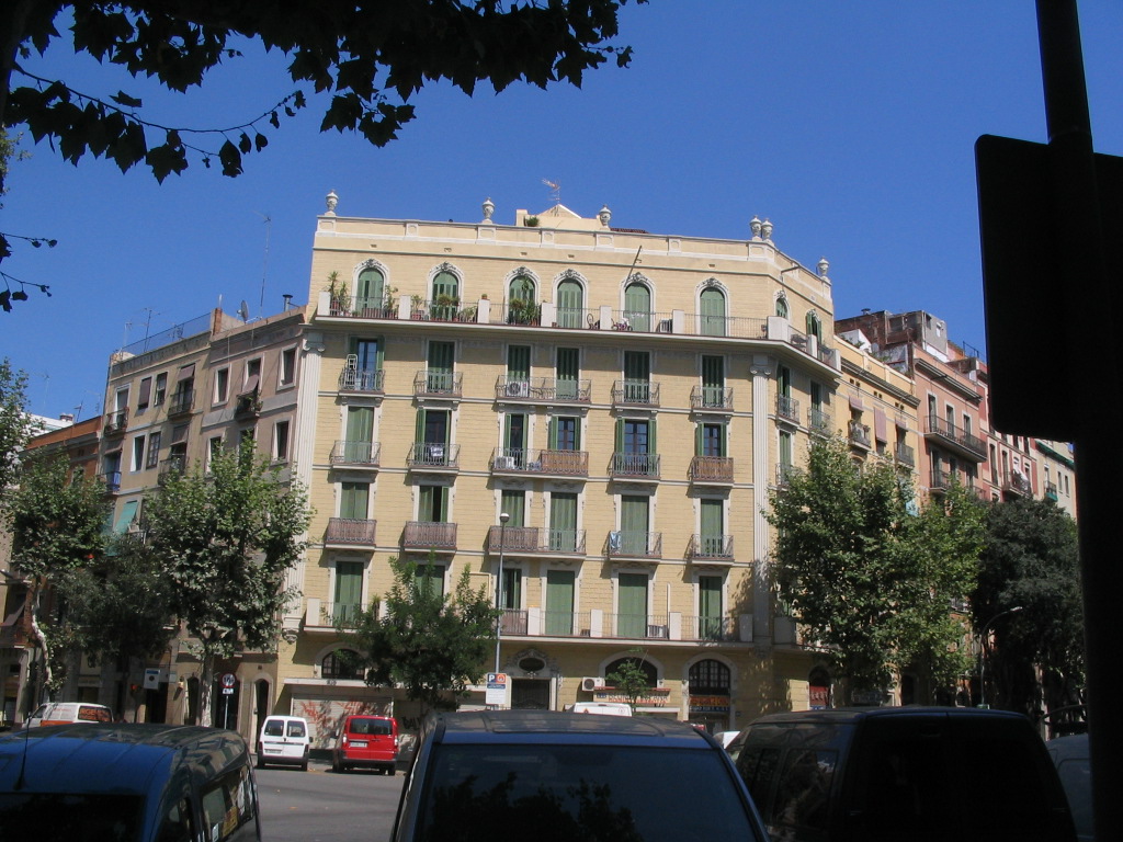 The strong sun made for lots of shut shutters on this wide façade on the eastern corner of Carrer del Parlament and Carrer la Viladomat.