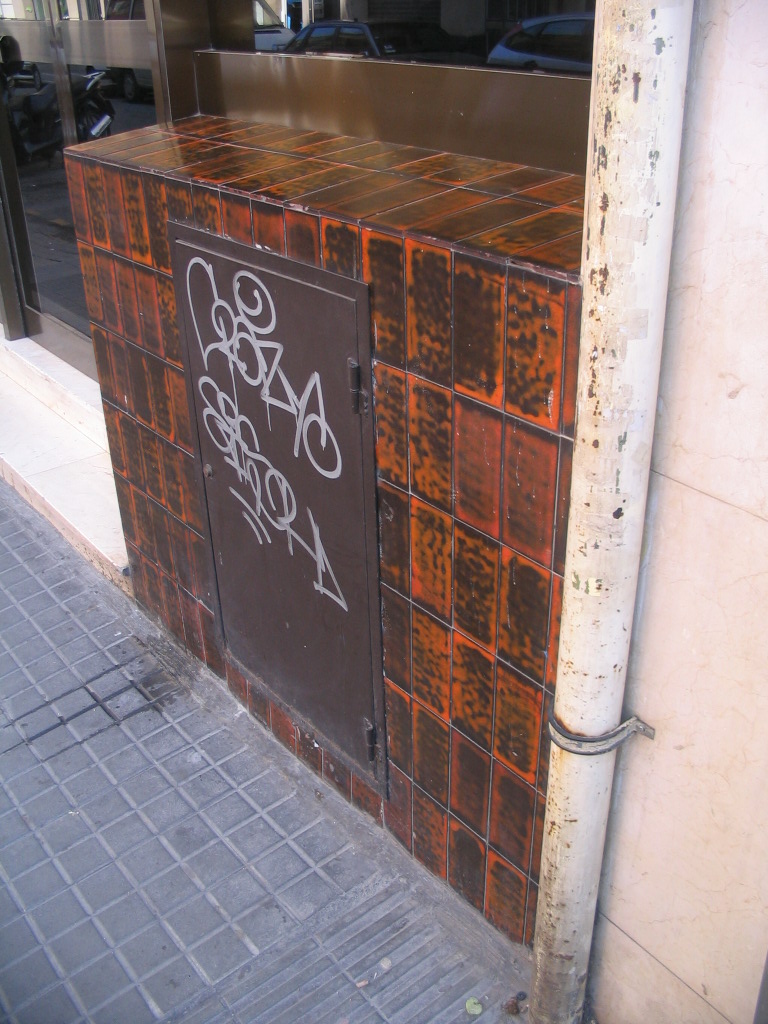 Just up Carrer de la Bòbila from Plaça Navas, an array of oddly hued tiles. I have a sudden craving for chocolate-covered persimmon candies.