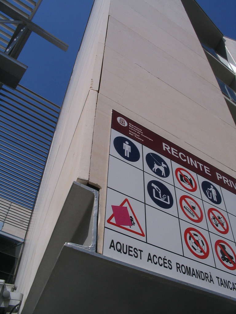 Slant H with Impaled T, 2009. (This is the Plaça d'Ovidi Montllor, more just a passageway on the west side of IT, leading up to the Teatre Lliure.)