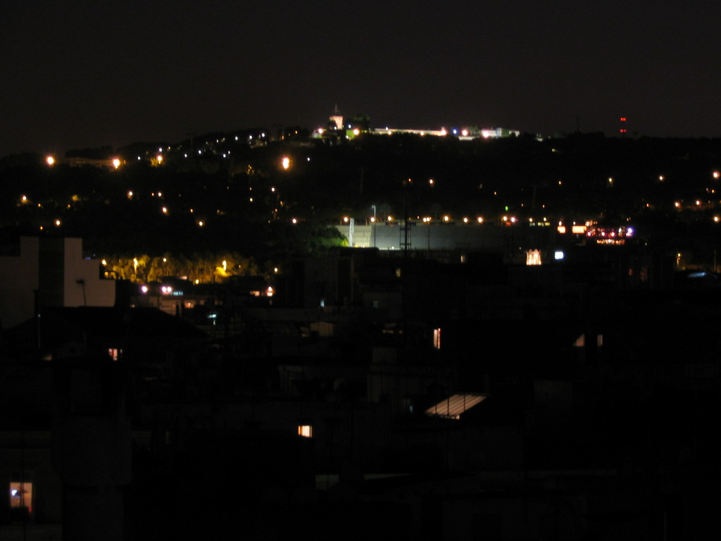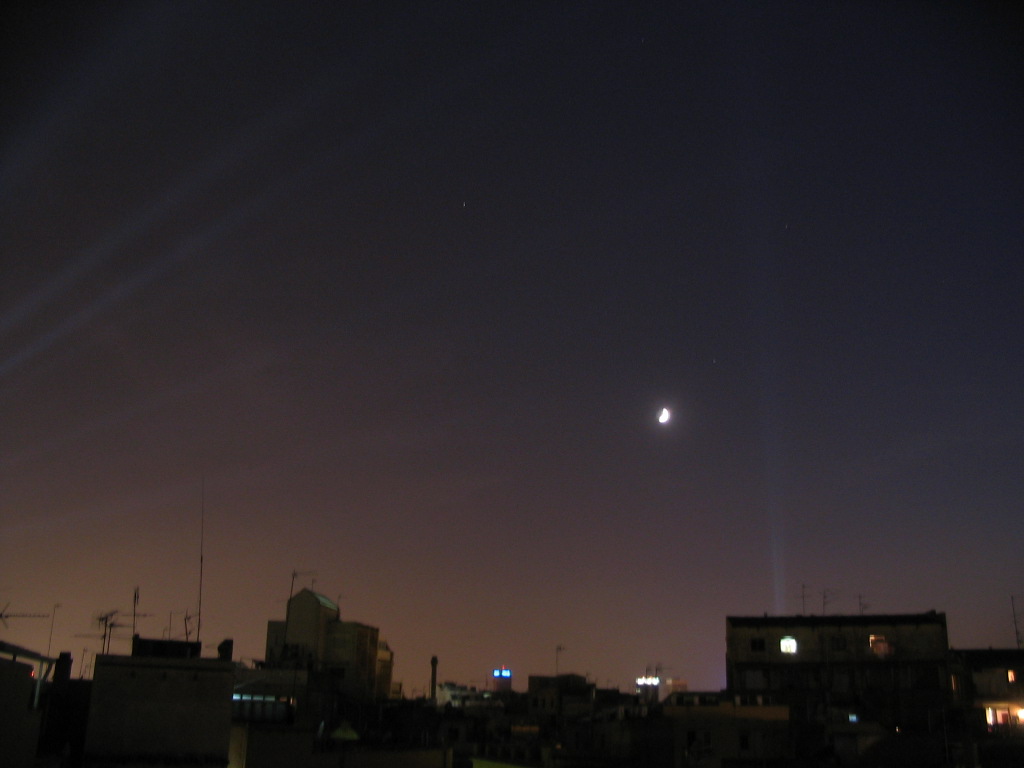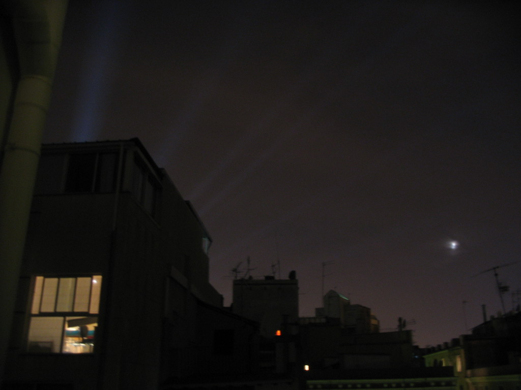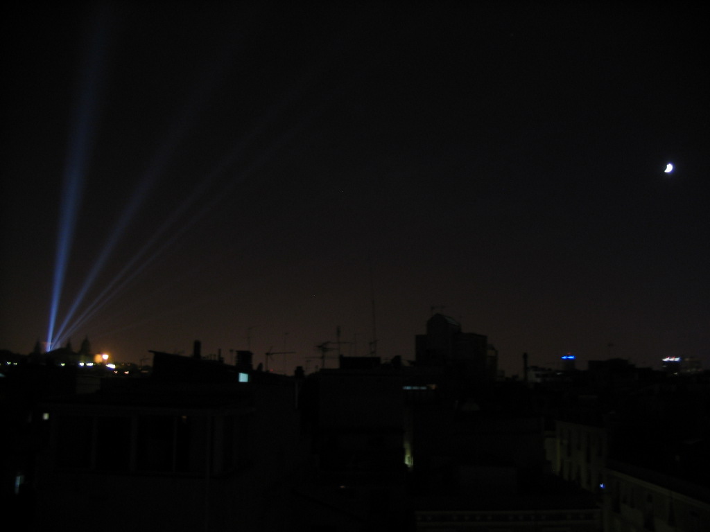 The previous shots were from the roof; this one was from the apartment's back window — the Palau's rays were still visible as clouds veiled the moon.