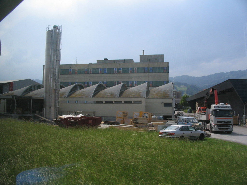 This looks like a mansion converted into a factory by adding four stories under it. I love it. The whole industrial/alpine scenery along the route is fascinating.