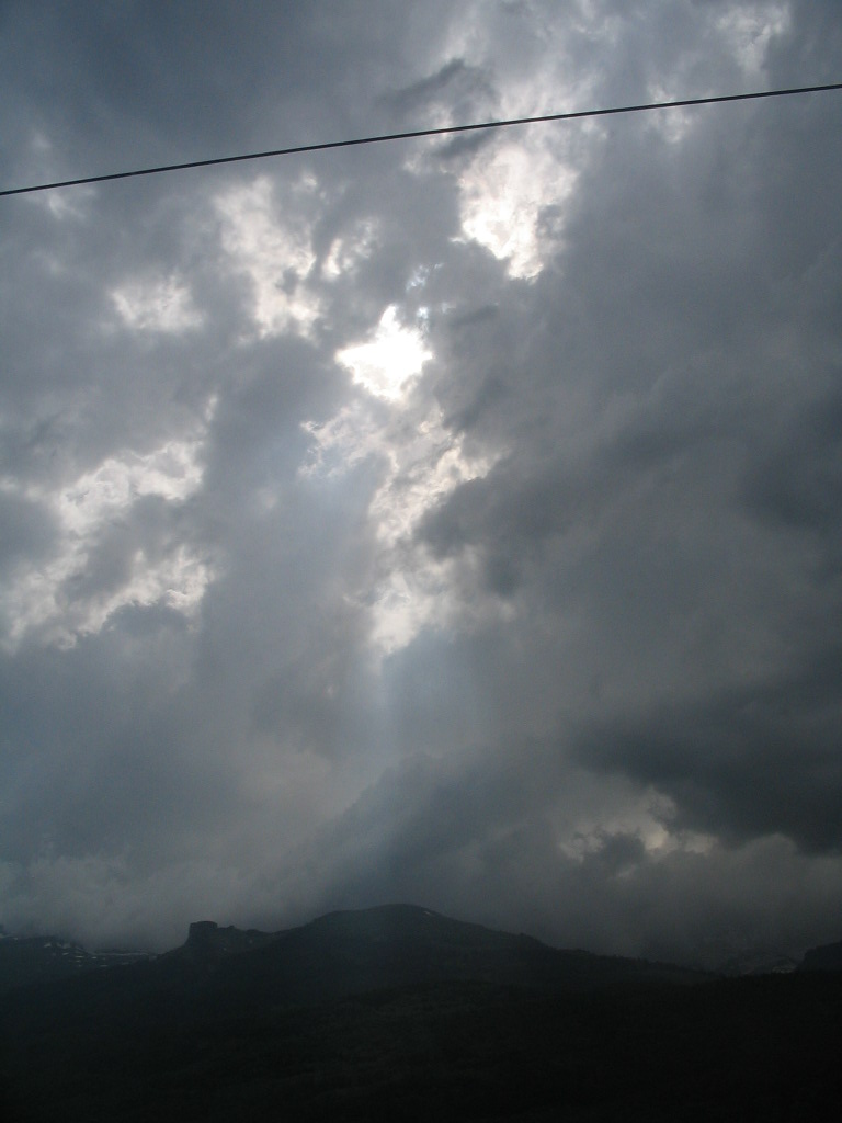 Is that a... wall of rain enveloping the mountains in the distance? It can't be, right?