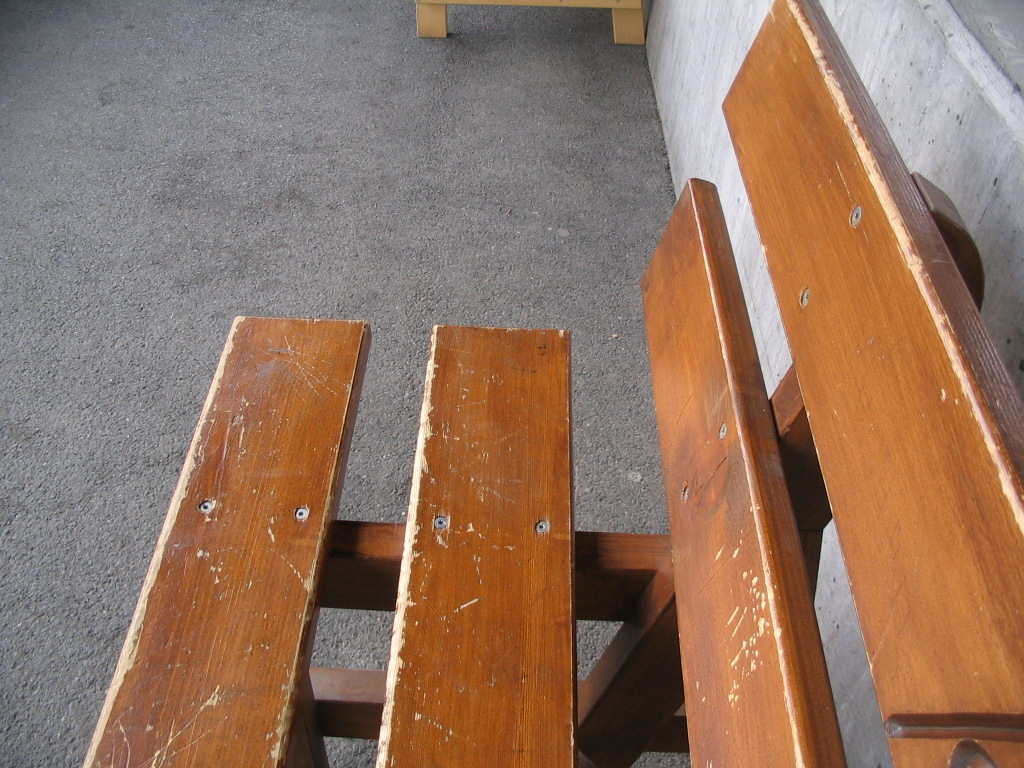 This bench's interstitial spaces are a little too wide for posterior comfort or security.