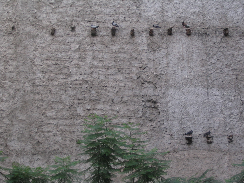 The beams as well as the crags in the masonry are, predictably, popular with the pigeons.