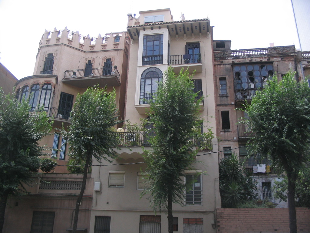 Across the way from the next block down Vallcarca, a nice collection of subtle Moorish-looking façade details, plus a bonus: cantilevered Catalan vaults.