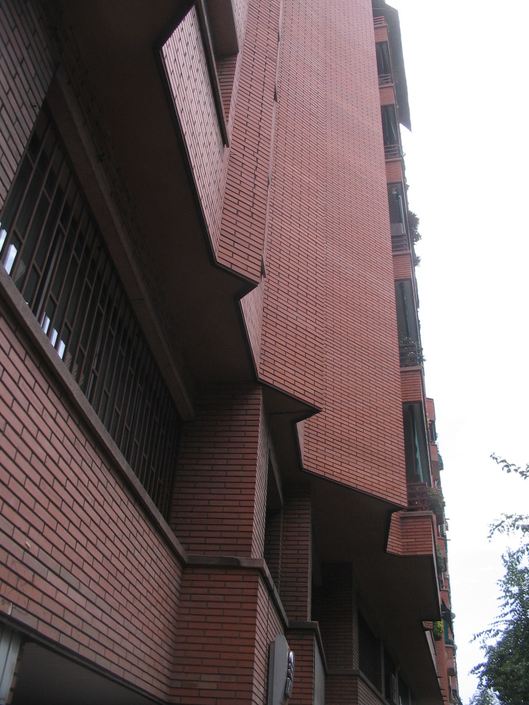 Adjacent to the previous: I assume the middle portion of the wall was originally an internal lightwell. The exteriorized plumbing stacks are a pleasant touch. Talk about expressed systems.
