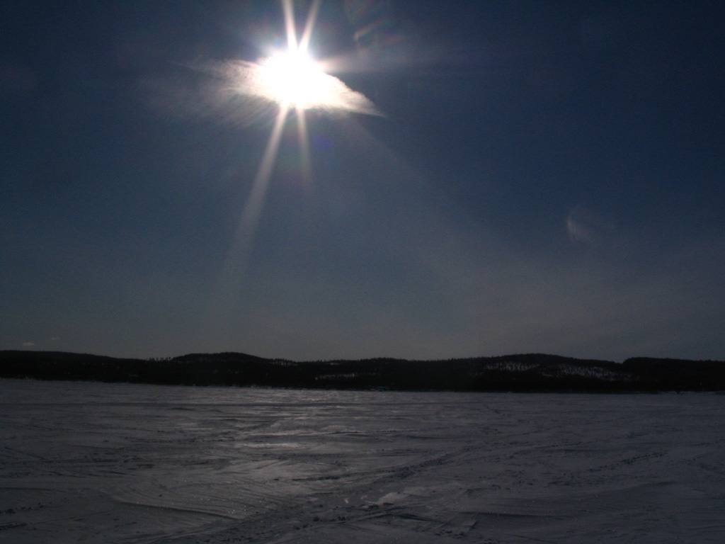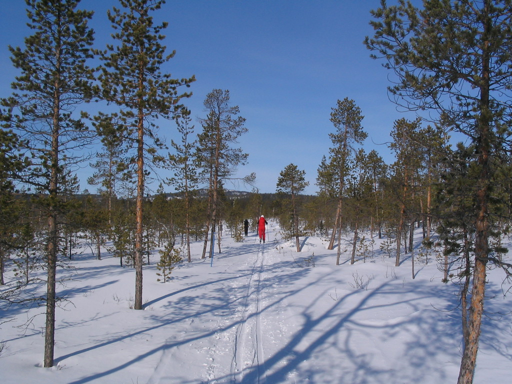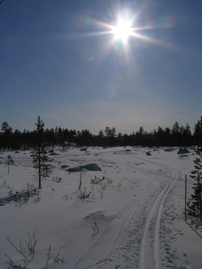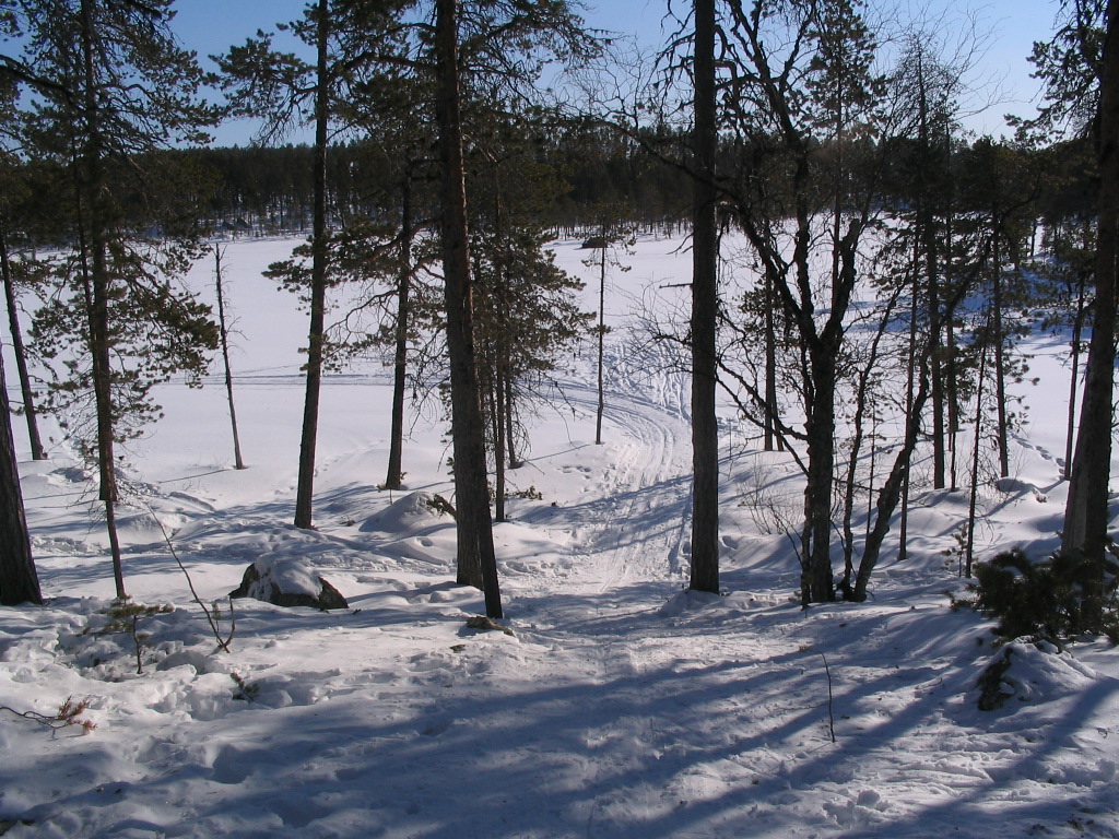 The first part of the ski route was on the frozen Inarijärvi (Inari Lake). Inarijärvi is very large; it extends maybe 40 miles northeast from Inari. We only saw a tiny bit of it, particularly because its coastline is very complex and it's dotted with islands.