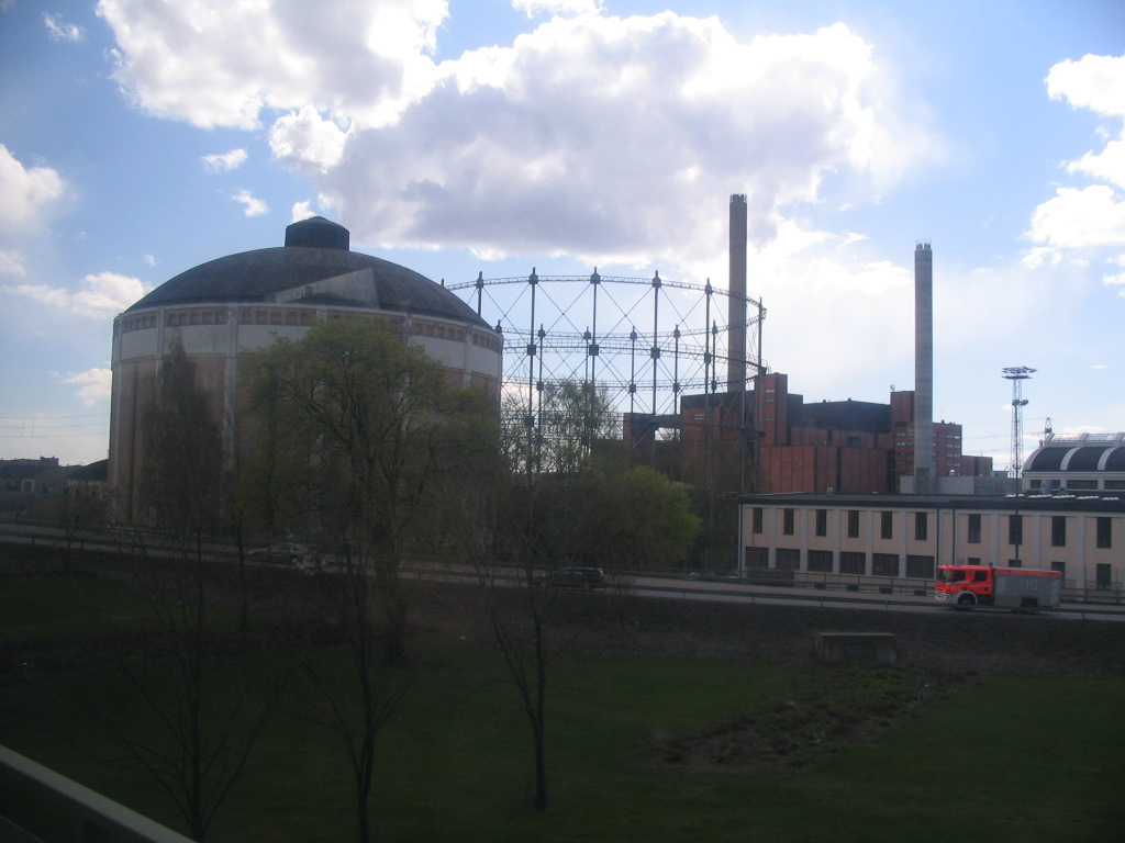 On the way: Hanasaari in the background, the old power station complex in the foreground. I accidentally through the old power station grounds on a run one night.