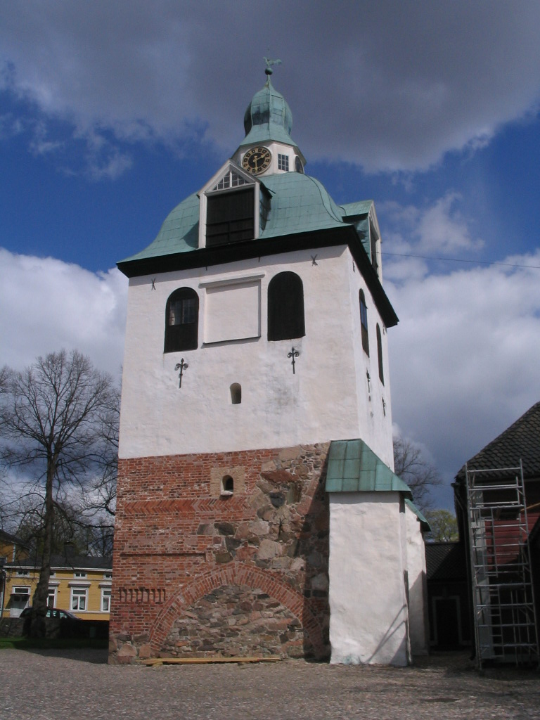 The quite anthropomorphizable bell tower, with palimpsestuous brick and stone walls, like the Hämeen Linna keep.