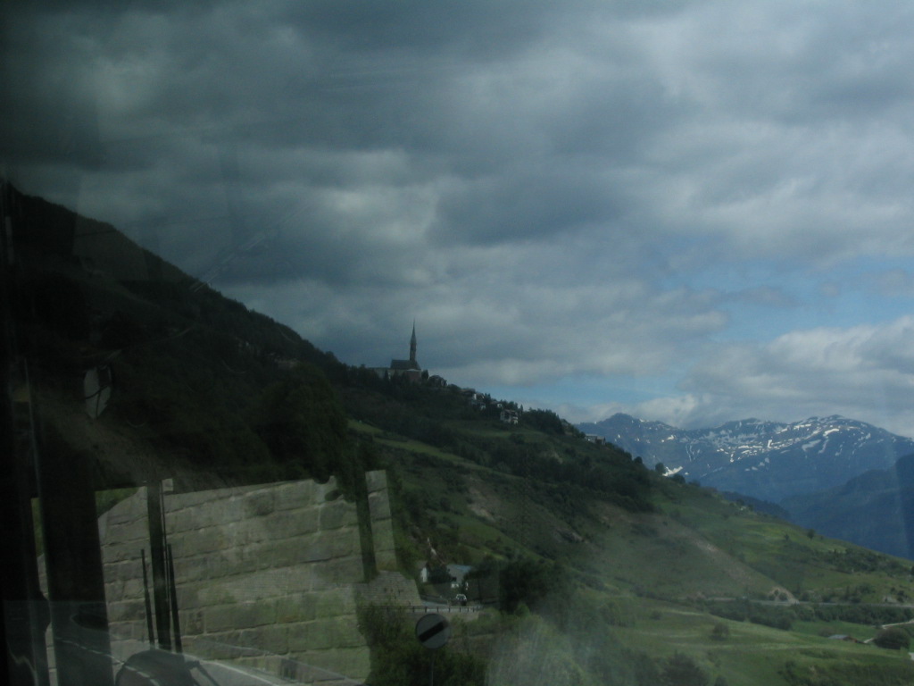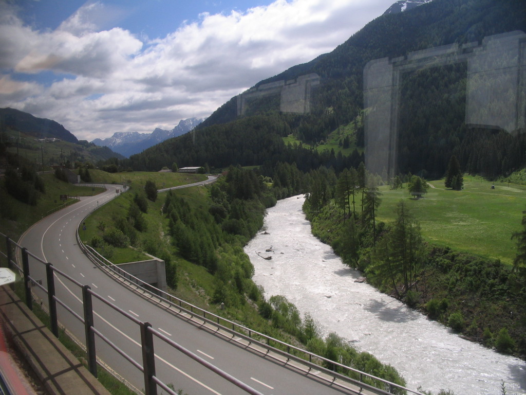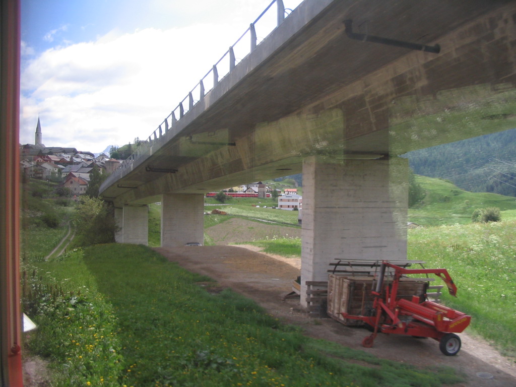 The highway on the way to Ardez is elevated over train tracks not visible here.