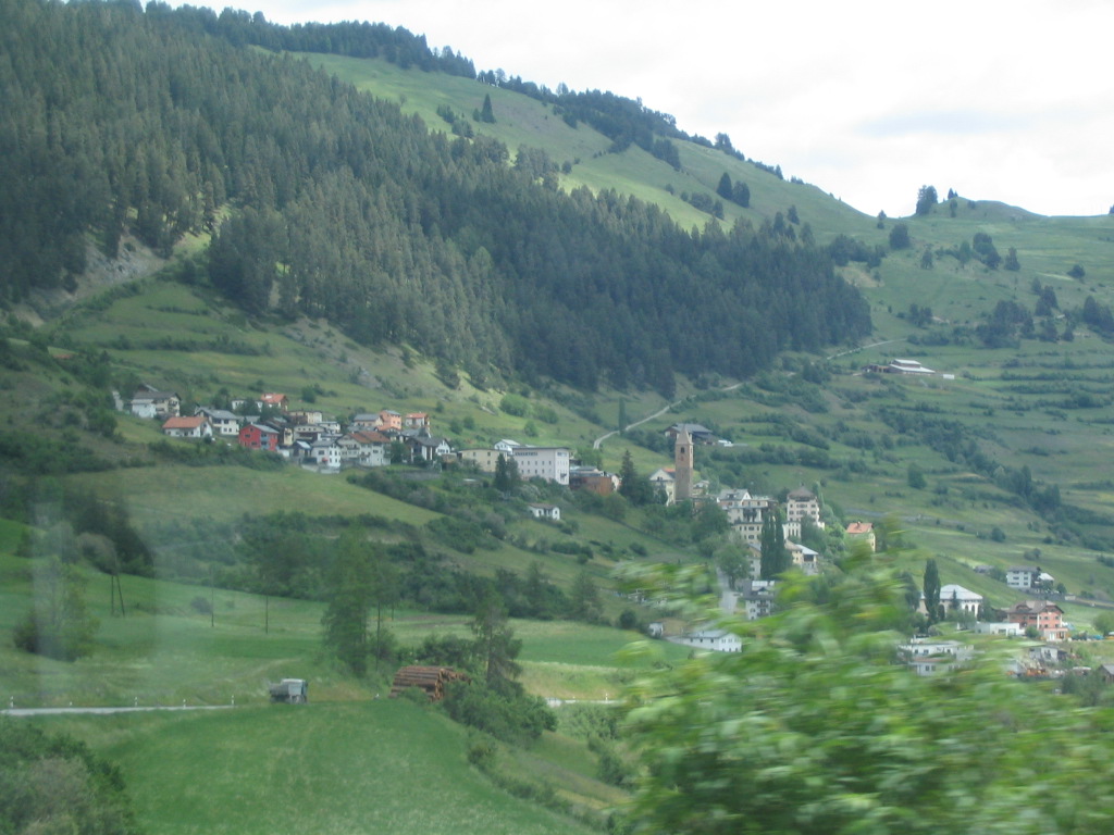 A clearer Ramosch view. Note how the hill terraces to the right have trees at their boundaries, which I don't remember seeing elsewhere.