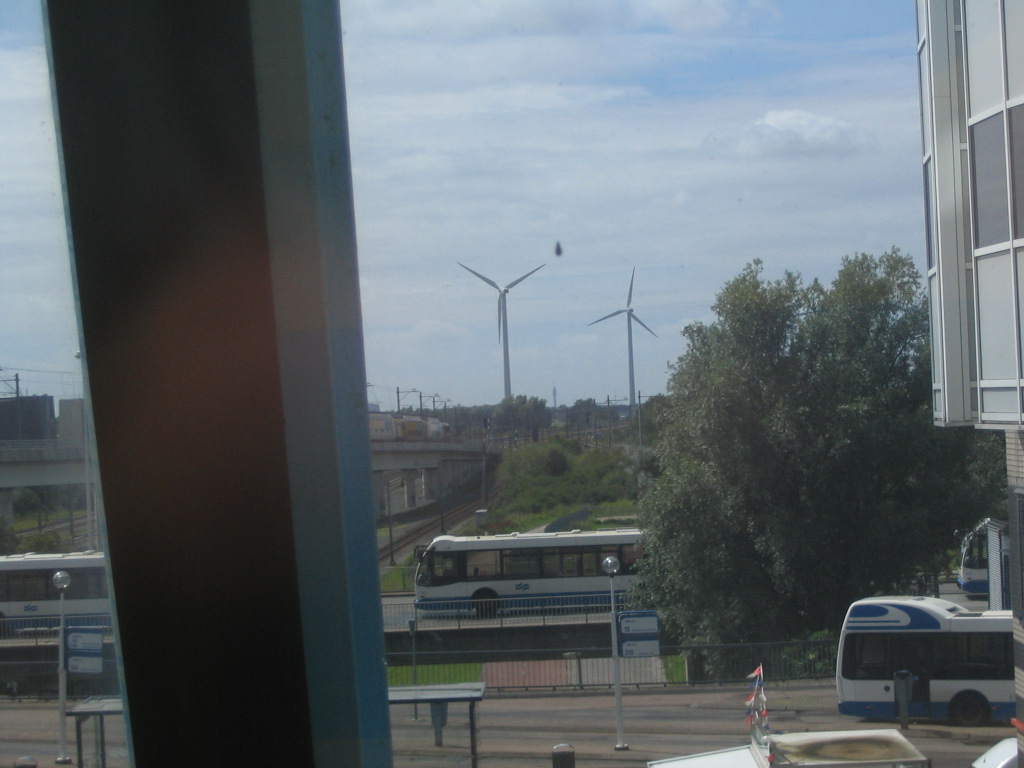 Wind turbines in the distance as seen from the Amsterdam Sloterdijk station. The next few shots are at Sloterdijk as well.