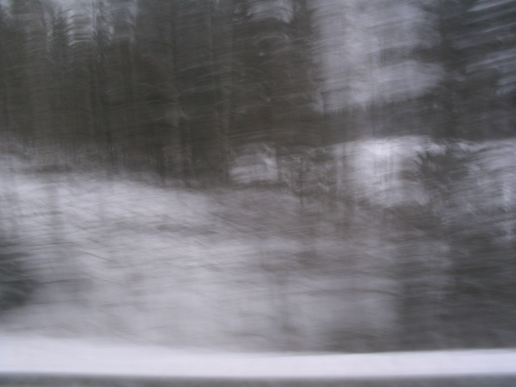 Quite unintentionally blurry shot of the woods by the highway outside of the city, but it ended up looking kind of neat.