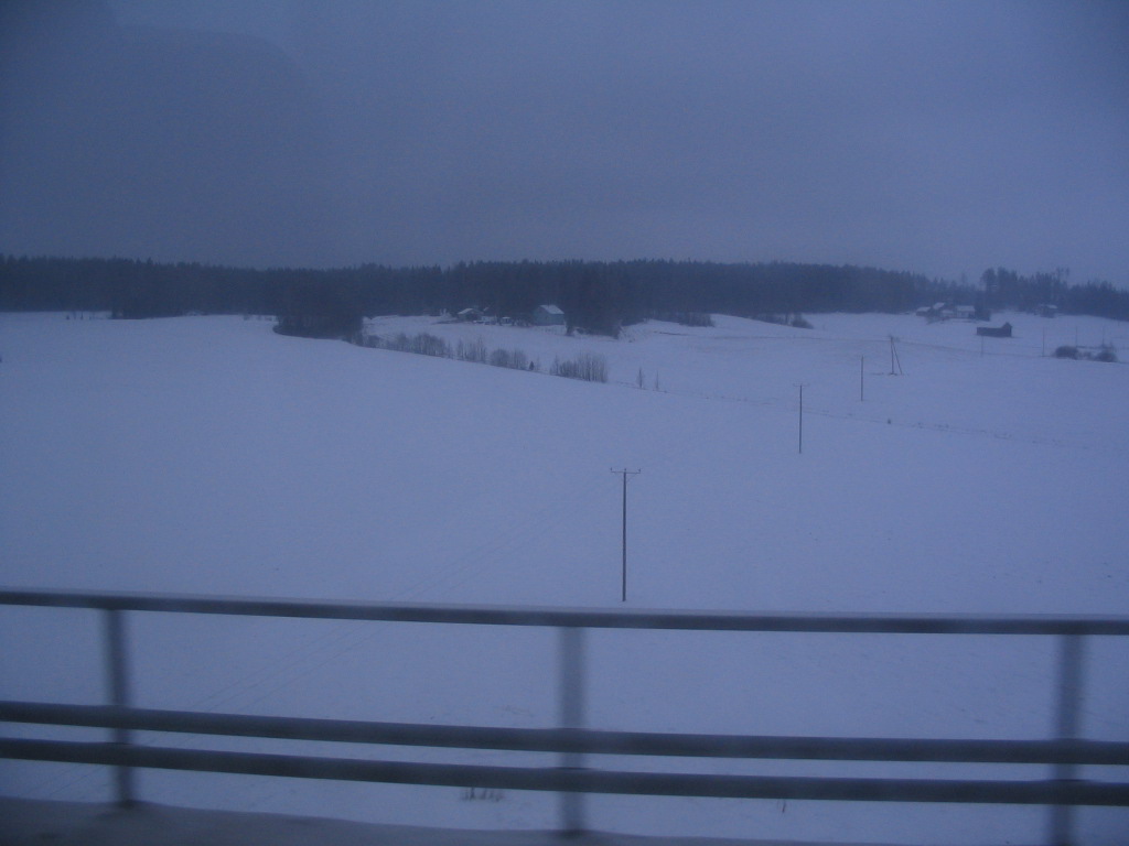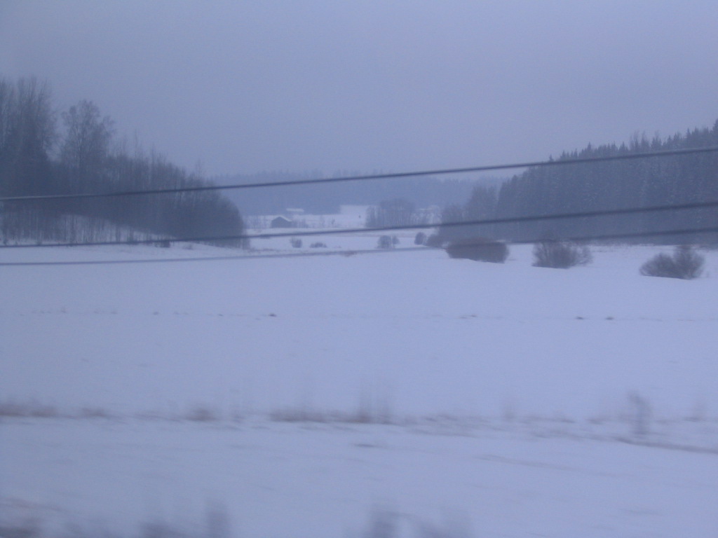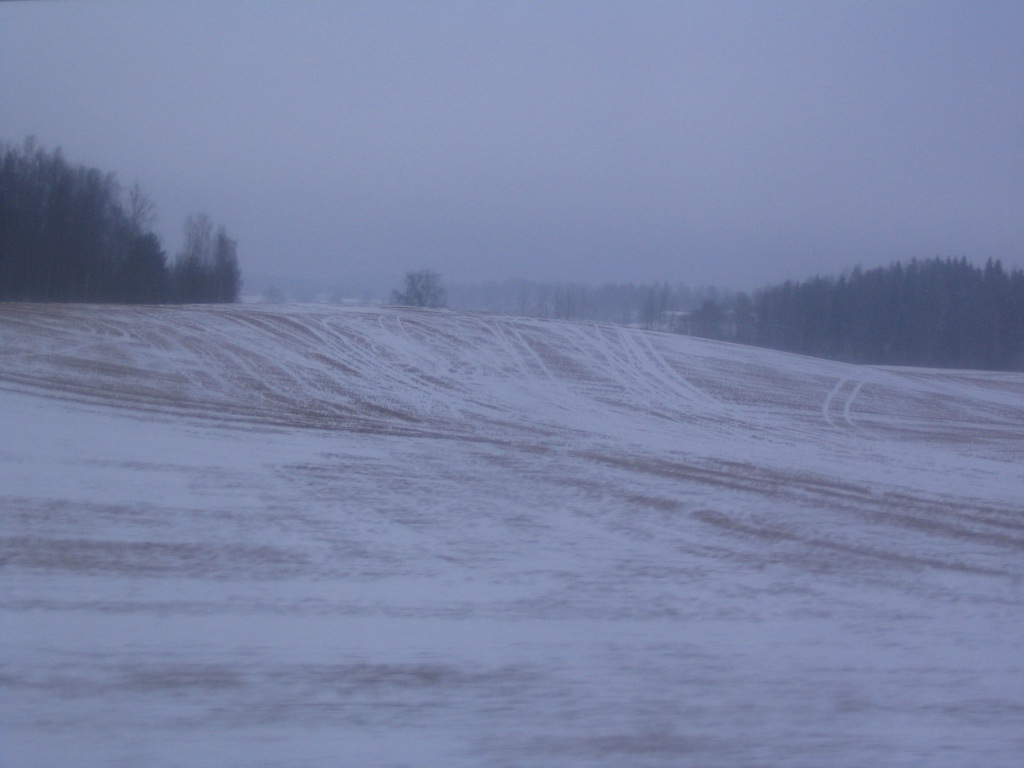 A typical view of the farmland between Helsinki and Turku; the patchiness of fields and farms often leads to these fleeting long views.