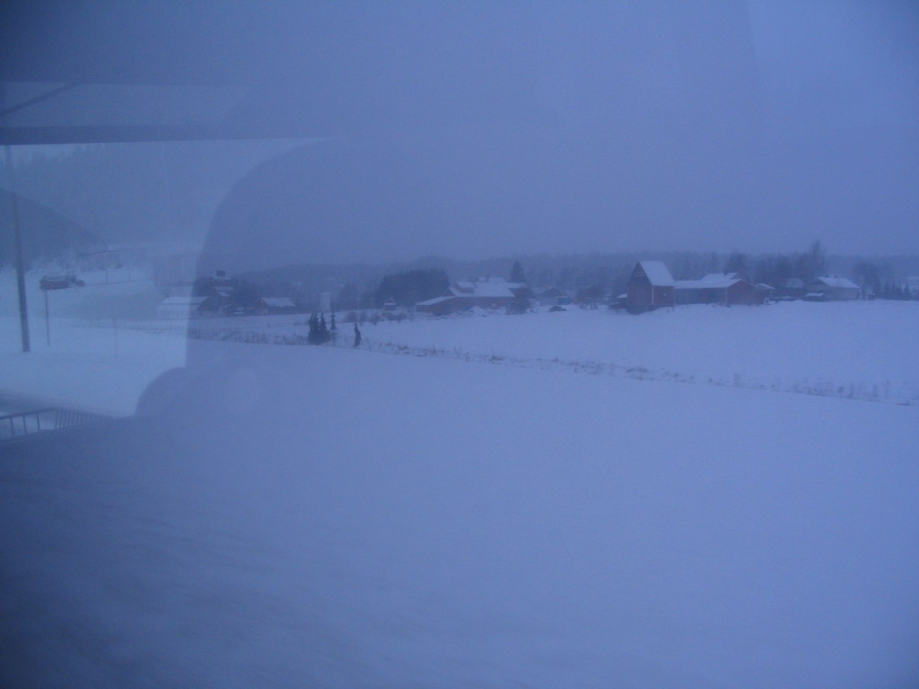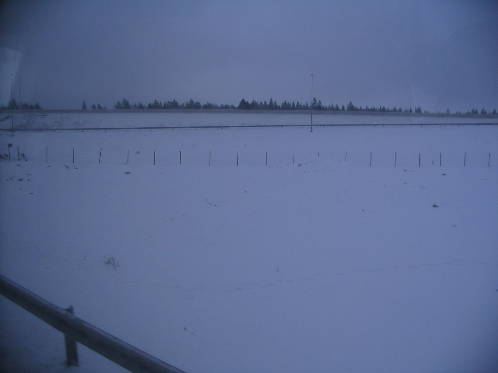 An interesting variety of farm buildings; these nearly whiteout conditions would continue through most of the remainder of the trip.
