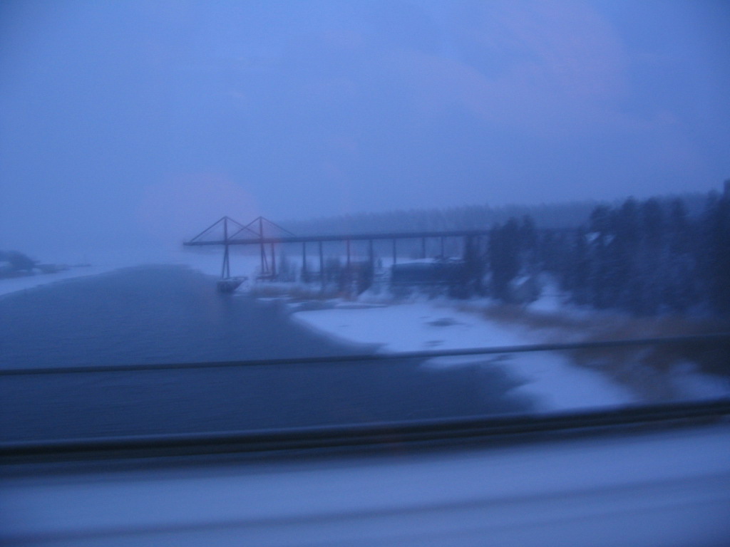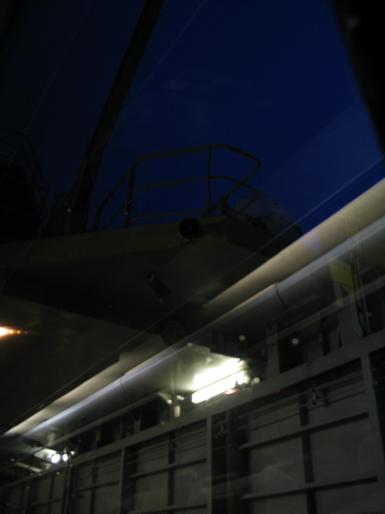 The second bus leg included a hop over water on a car ferry; this is the superstructure of the ferry viewed through the bus window.