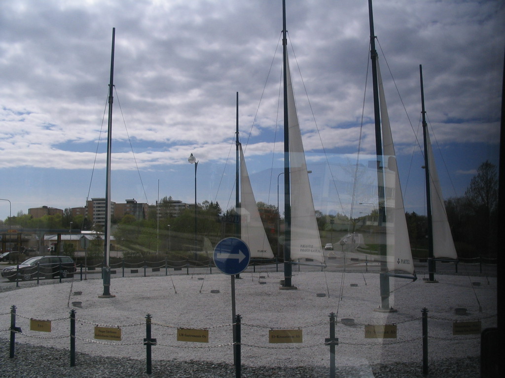 A set of sails in the rotary at Parainen, familiar from the winter trip.