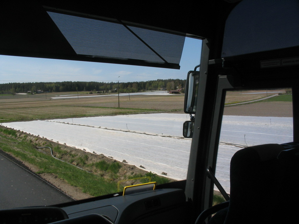 The further west and out into the maritime zone we got, the greener the farm fields seemed to get, although subtly so. I wonder what those white sheets are protecting.