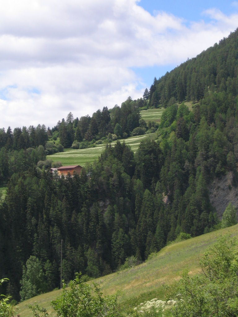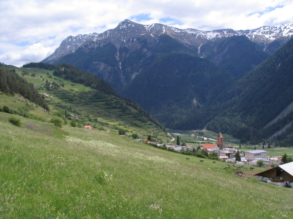 From the bus stop, a ways below Ramosch, I hiked up through the village and then continued to a smaller, higher village, Vnà.
