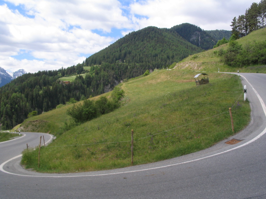 One of supernumerary hairpin turns. OK, fine, just four. I don't remember what that little covered-wagon-looking object was.