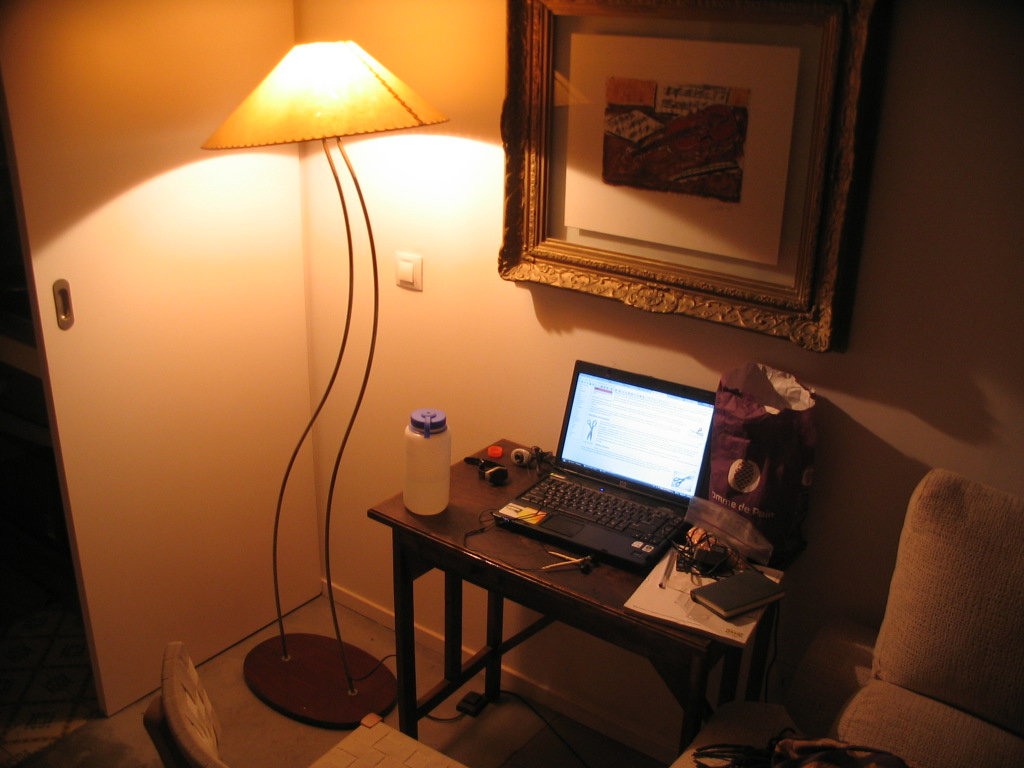 My desk setup in the apartment. Compact, but it worked fine.
