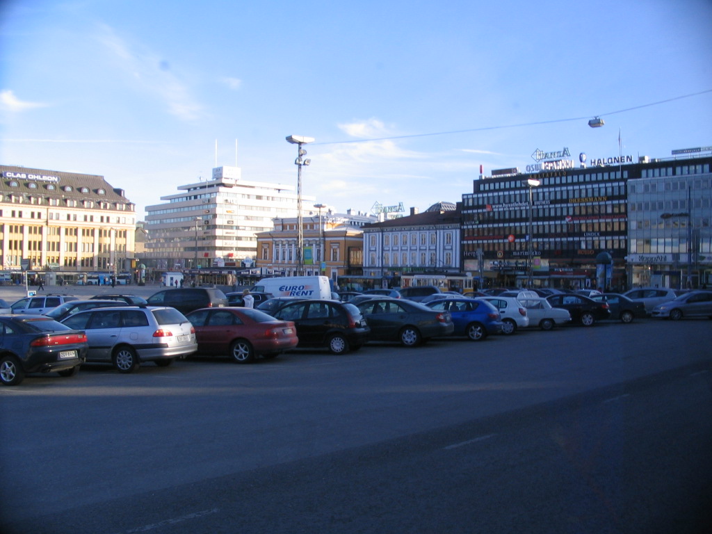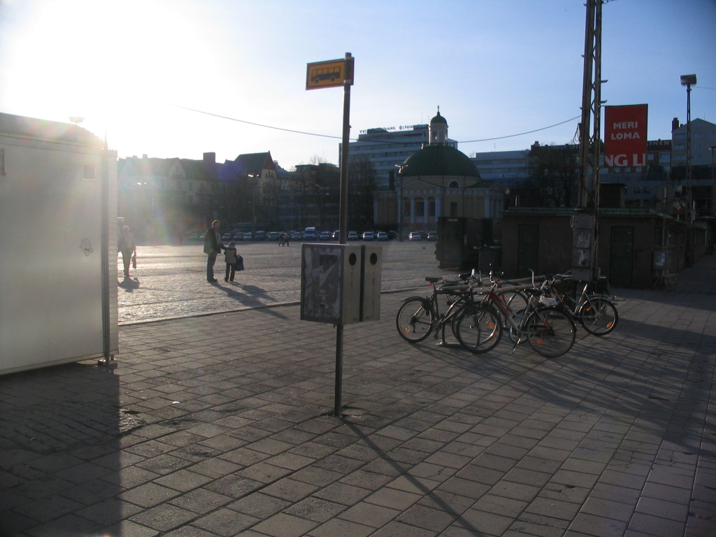 Turku's Kauppatori (market square), the central square. The rotunda building is the Orthodox church.