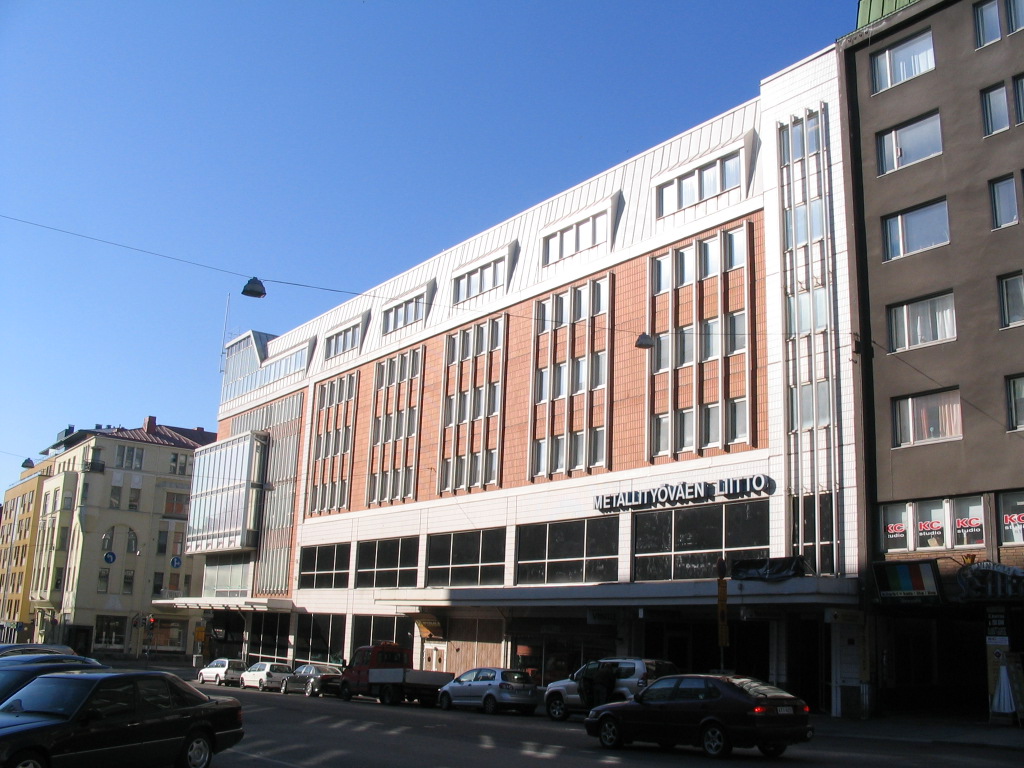 The next morning: bright sun on the Metalworkers' Union building across the street.