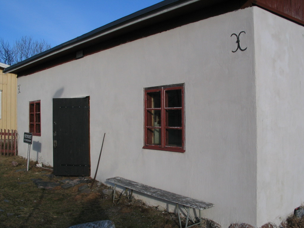 The front side of Stenhuset, facing uphill toward the lighthouse.