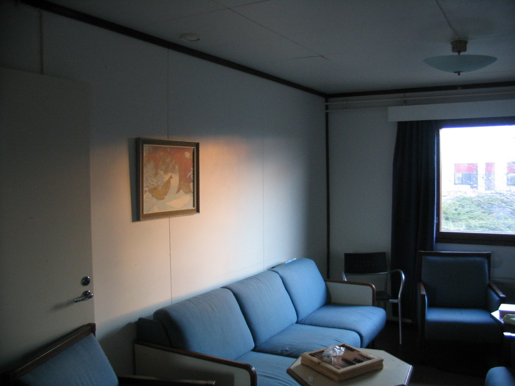 The yellow building is the hostel; this is looking east, with the courtyard beyond.
