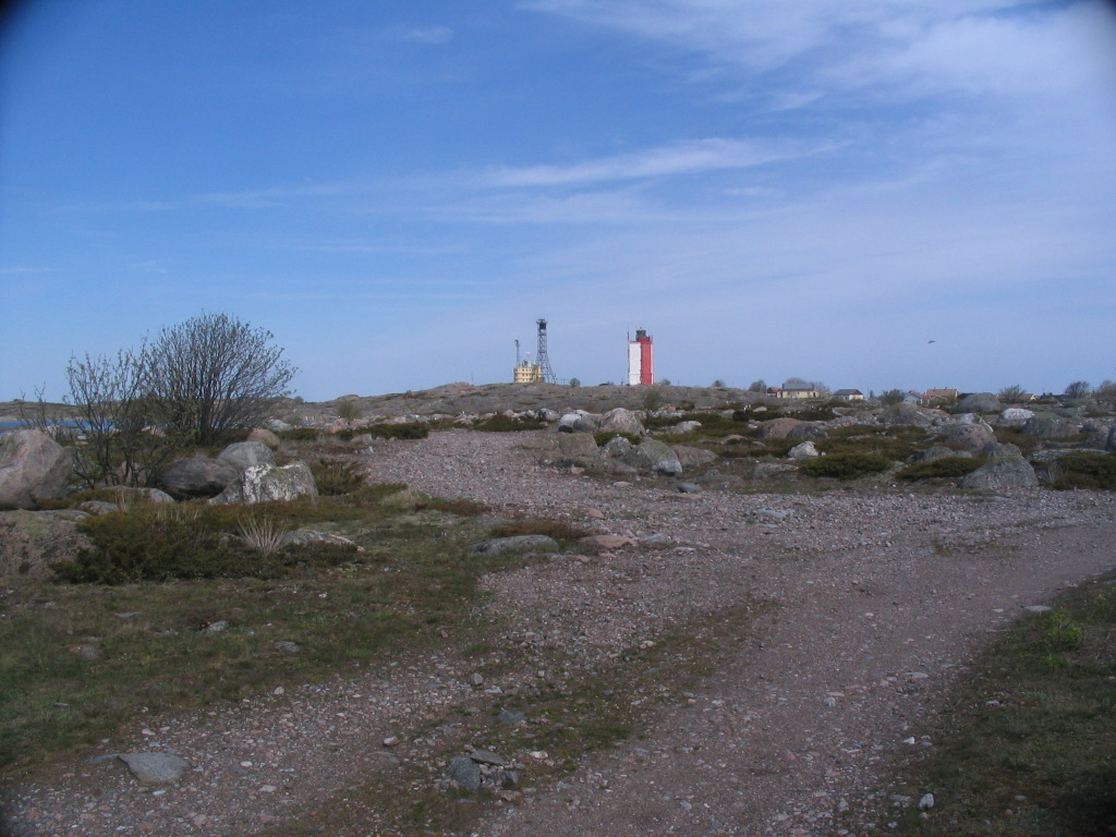 The lighthouse and pilot station from the way toward the southern end of the island.