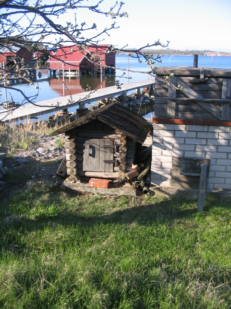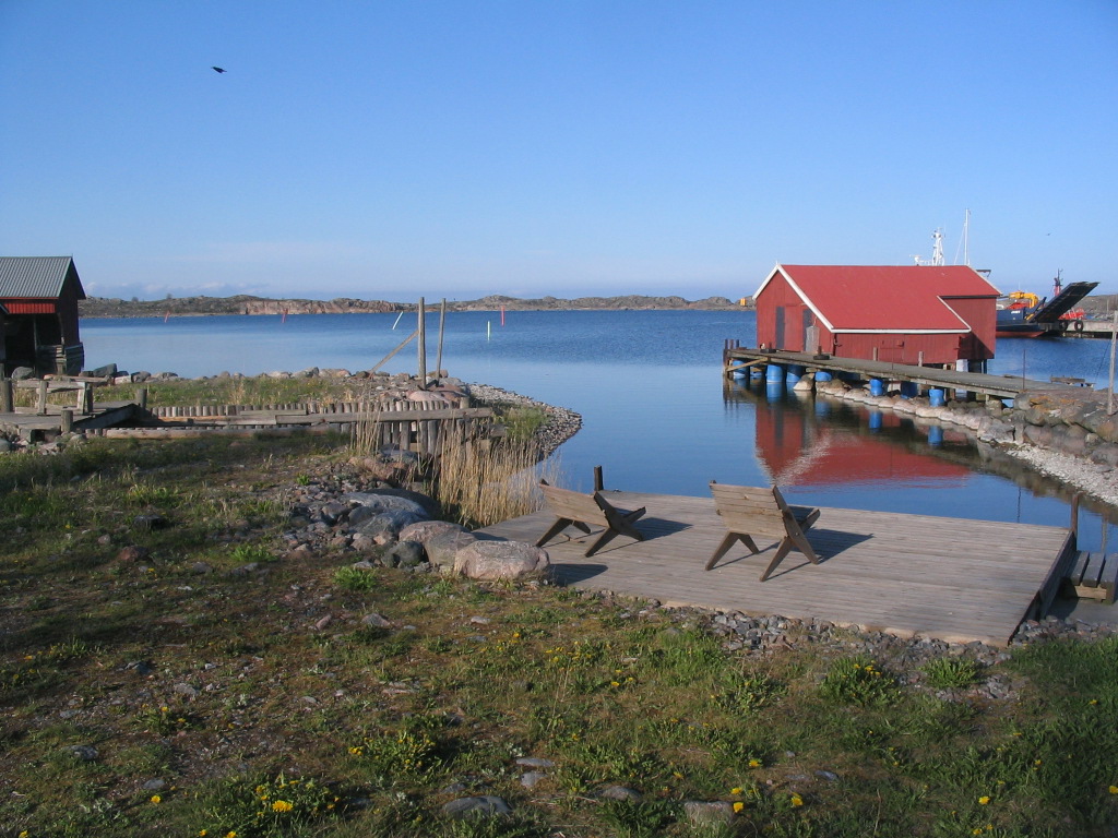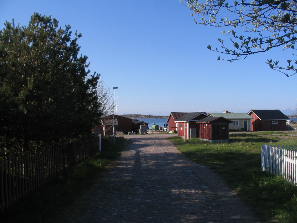 A nice framed view of the water at the end of the road from Stenhuset to the village.