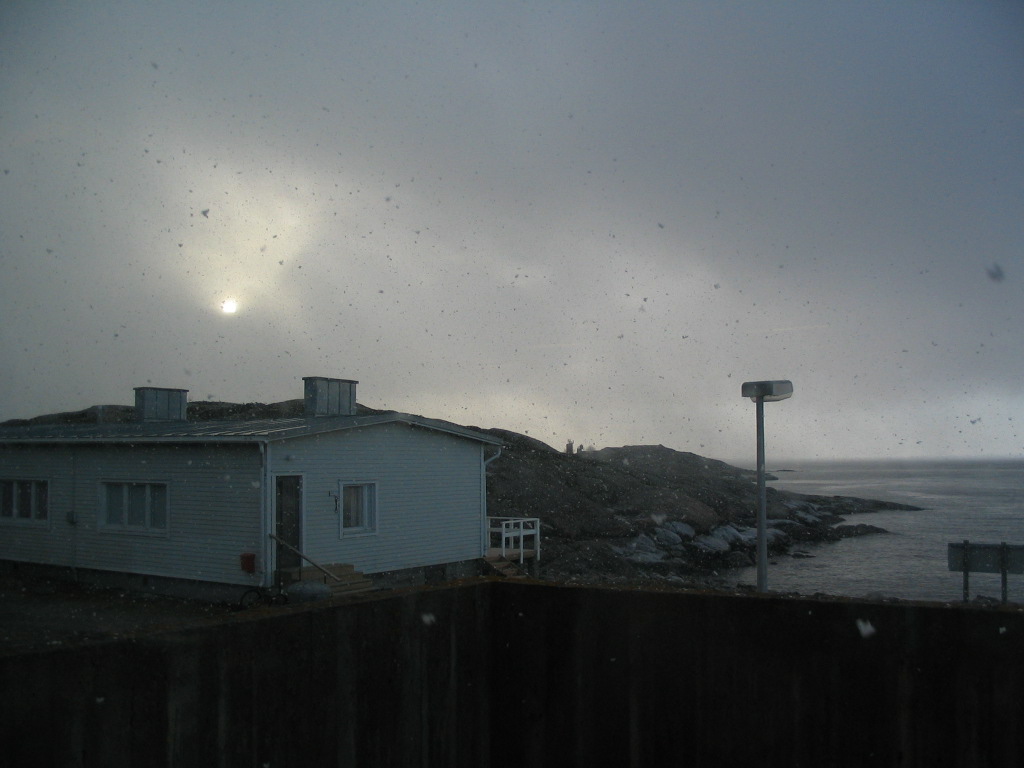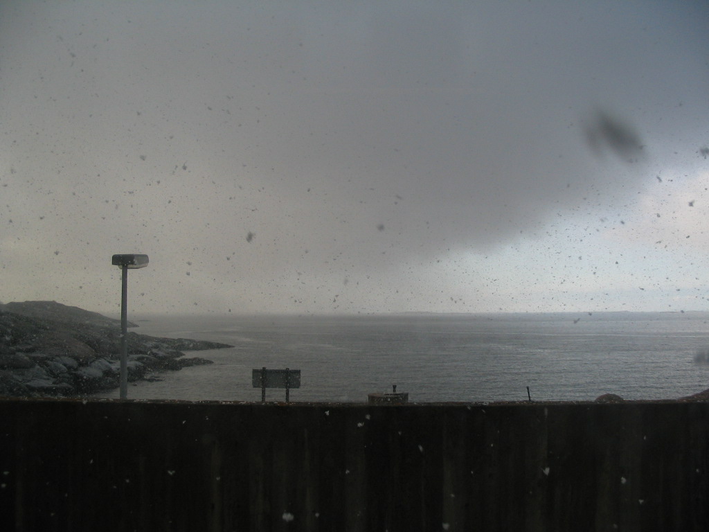Then the squall receded as fast as it had arrived. You can see here that snow is still falling into the water near the horizon.