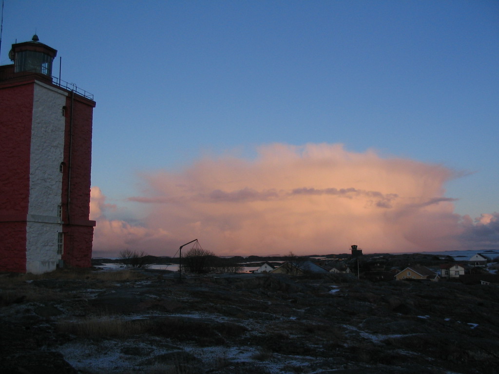 Up by the lighthouse, the squall cloud still looming.