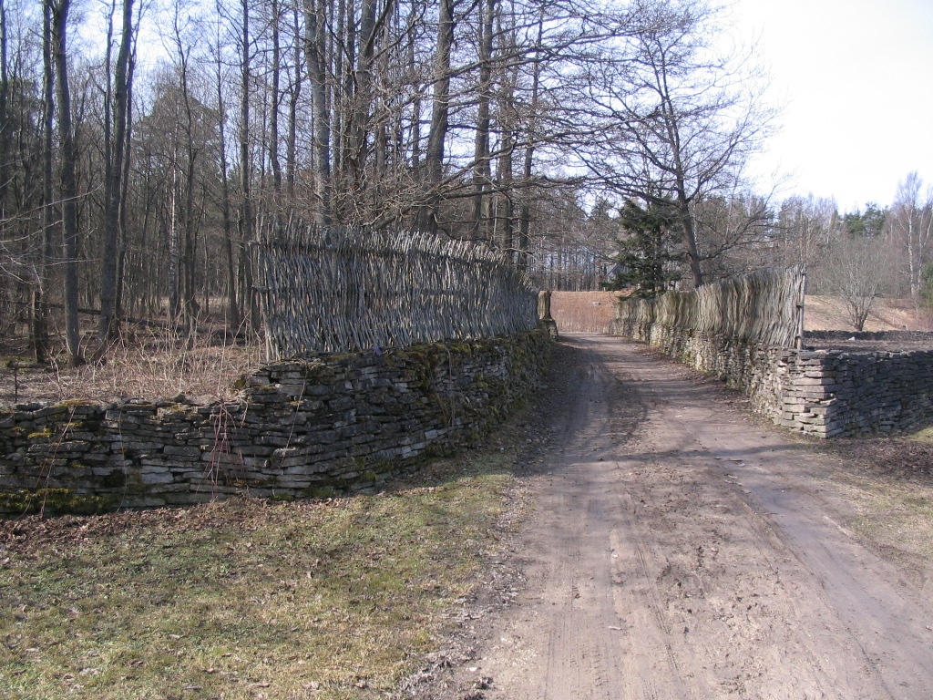 This is a pretty cool way to make a fence. (I like the goofy farmhouse in the center background. It looks like a catfish or something.)